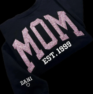 🎉Introducing our MAMA Glittered Applique Sweatshirt, a stunning addition to any mom's wardrobe. Choose from a variety of glitter fabrics to create a one-of-a-kind piece that sparkles and shines. Perfect for gifting to a special mom in your life, or to treat yourself to something special.