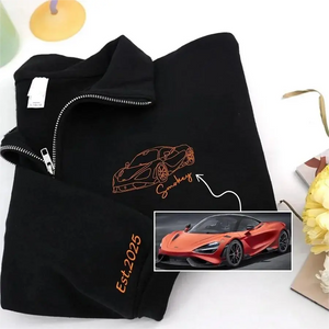 Show off your passion for cars with this personalized embroidered sweatshirt! We’ll turn a photo of your own car into a clean line-art embroidery — perfect for every car enthusiast, racer, or collector.