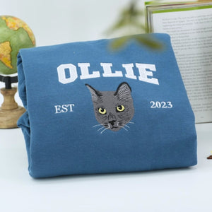 Celebrate your feline family members with custom cat portrait embroidered sweatshirts! Featuring detailed cat face embroidery with personalized names and special dates, these premium sweatshirts are perfect for proud cat parents, cat moms, cat dads, and anyone who adores their kitty companions. Our expert embroidery captures every whisker, marking, and unique feature that makes your cat special. Whether commemorating adoption dates, birthdays, or simply showing cat parent pride, we'll create custom embroidered masterpieces that honor your special feline bonds. Ideal for cat cafes, vet visits, or everyday wear that showcases your unconditional cat love. Each sweatshirt becomes a wearable tribute to your beloved fur babies.