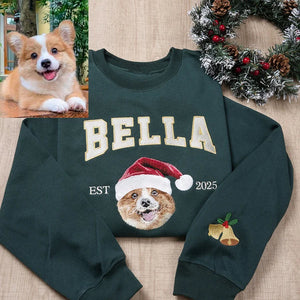 Custom Christmas Preppy Detail Embroidered Pet Portrait Sweatshirt Hoodie with Santa Hat | for Pet Lover