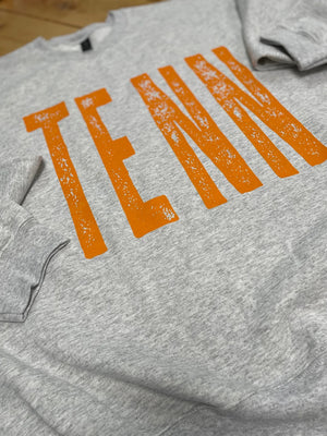 Turn heads at the next game with our custom Mascot Split Cardi Crew! Designed for sports moms, students, and fans, this Mascot Sweatshirt is Cut and distressed down the center so you can style it your way. Wear it as a pullover, or cut it down the middle to create your own unique cardigan/jacket look.