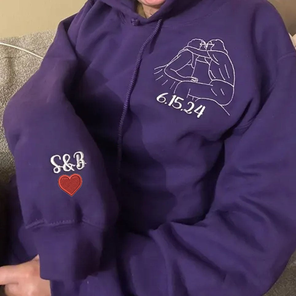 Home Custom Couple Embroidered Portrait from Photo Sweatshirt Hoodie Anniversary Gifts Valentine's Day Gifts for Her