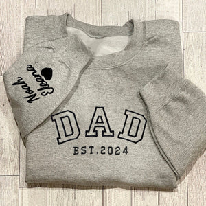 Custom Dad Embroidered Sweatshirt Hoodie With Date On the Sleeve For Father's Day