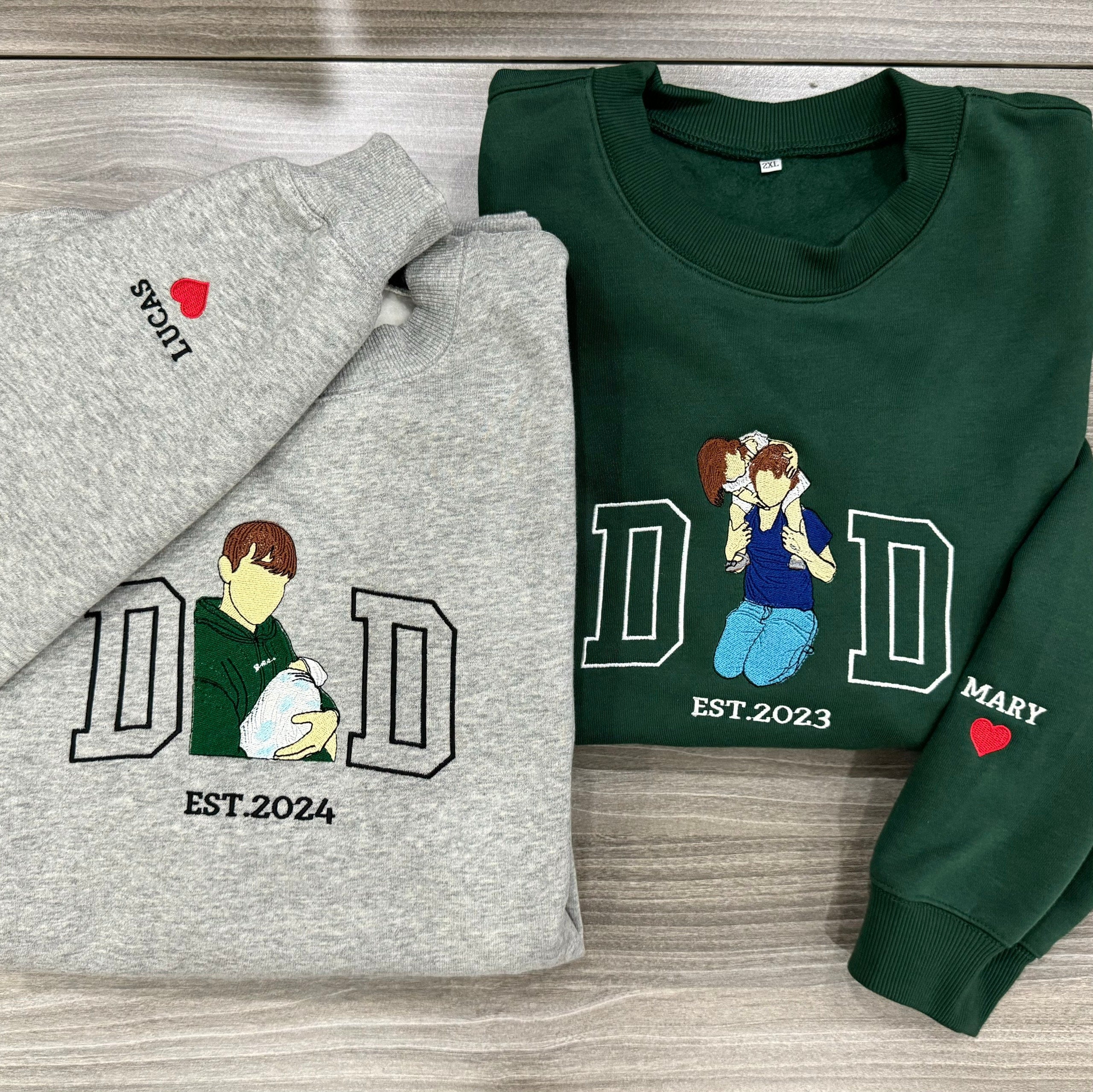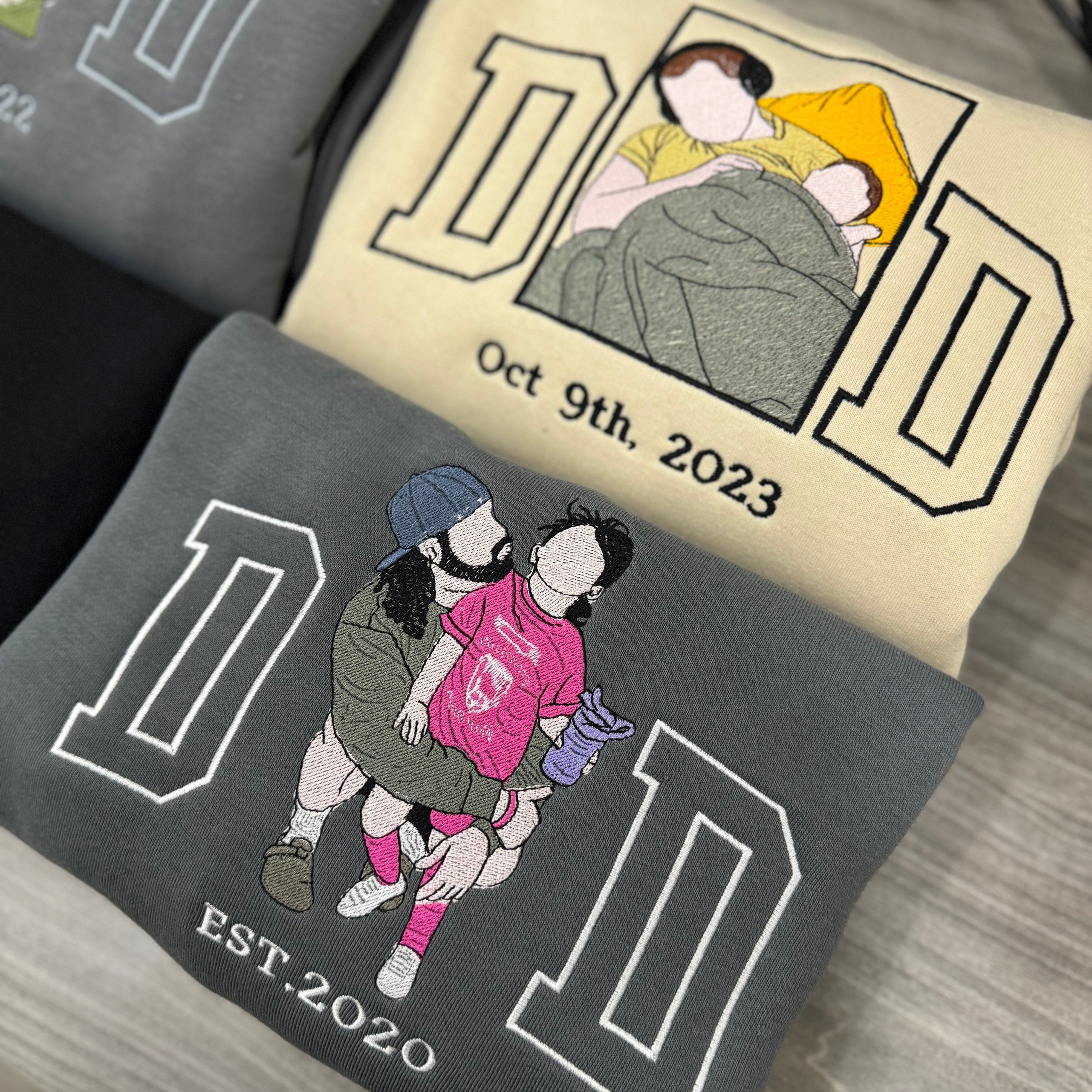 Home Custom Embroidered Dad Portrait Sweatshirt From Picture, Unique Fathers Day Gifts