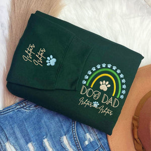 Custom Dog Dad Rainbow With Names Embroidered Hoodie | Gift For Pet Lovers