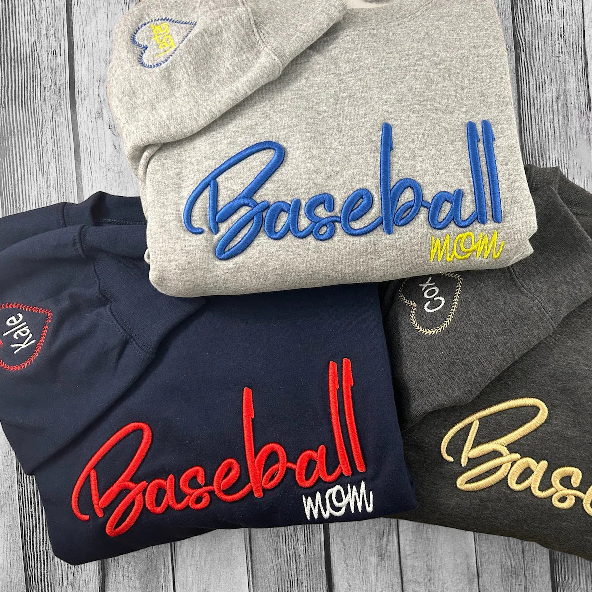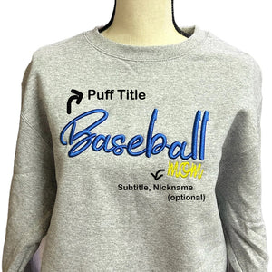 Custom Embroidered Baseball 3D Puff Sweatshirt Mom Sweatshirt