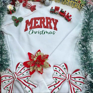 🎄💖Custom Embroidered Bow Christmas Sweatshirt - Pullover Bow Side Bow Applique💖🎄