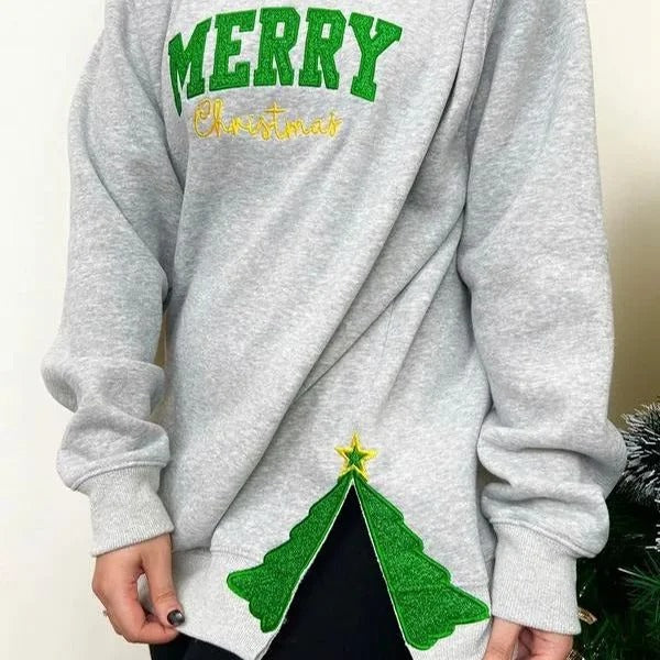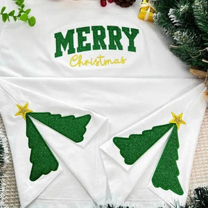 🎄💖Custom Embroidered Christmas Sweatshirt - Christmas Tree Glitter Side Bow Applique💖🎄