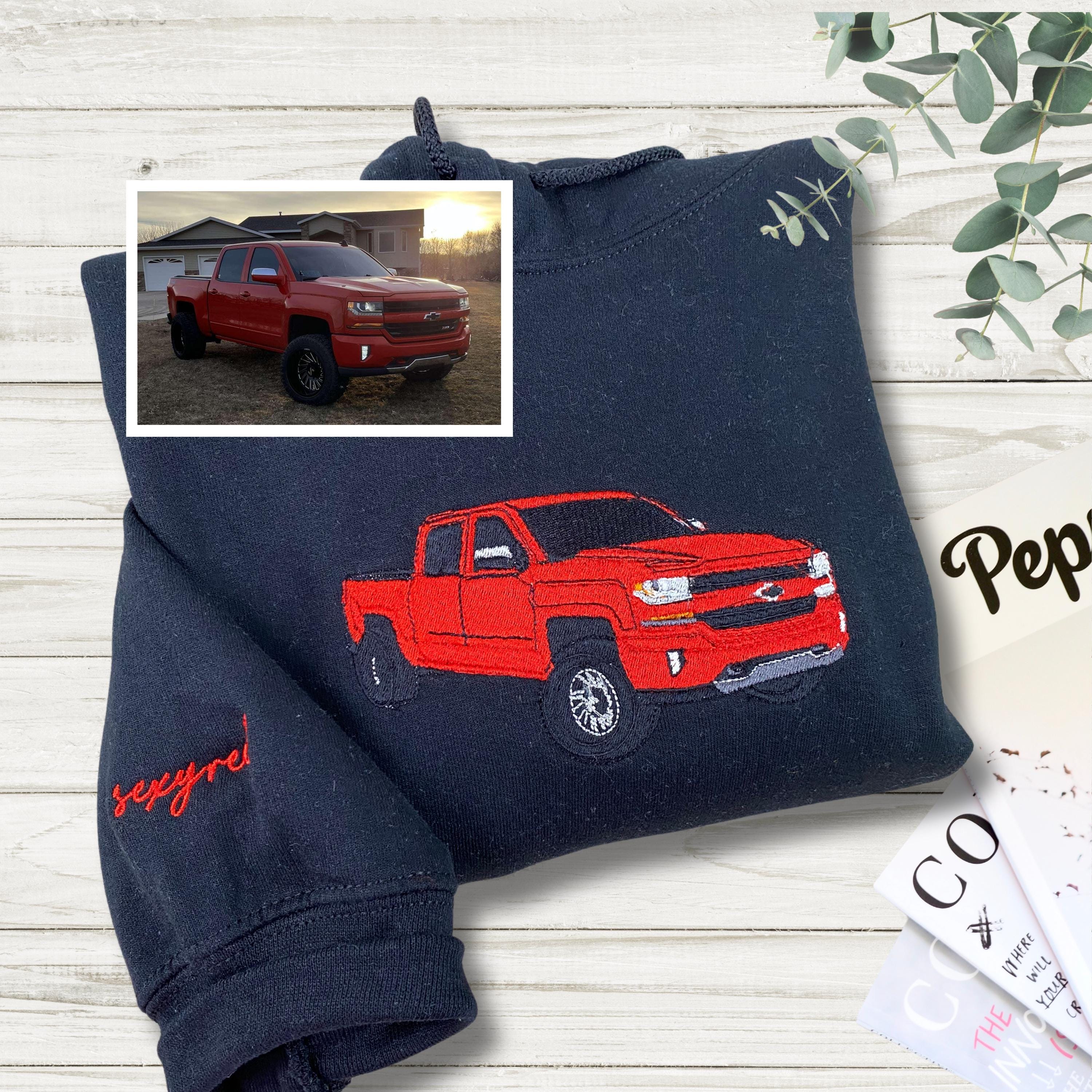 Custom Embroidered Car Sweatshirt From Your Photo - Personalized Car Hoodie For Husband - Car Portrait Shirt -Classic Car Gift For Boyfriend