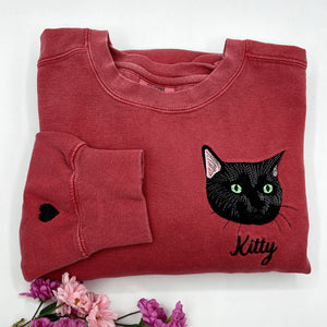 Home Custom Embroidered Cat Sweatshirt from Photo | Gift For Pet Lover