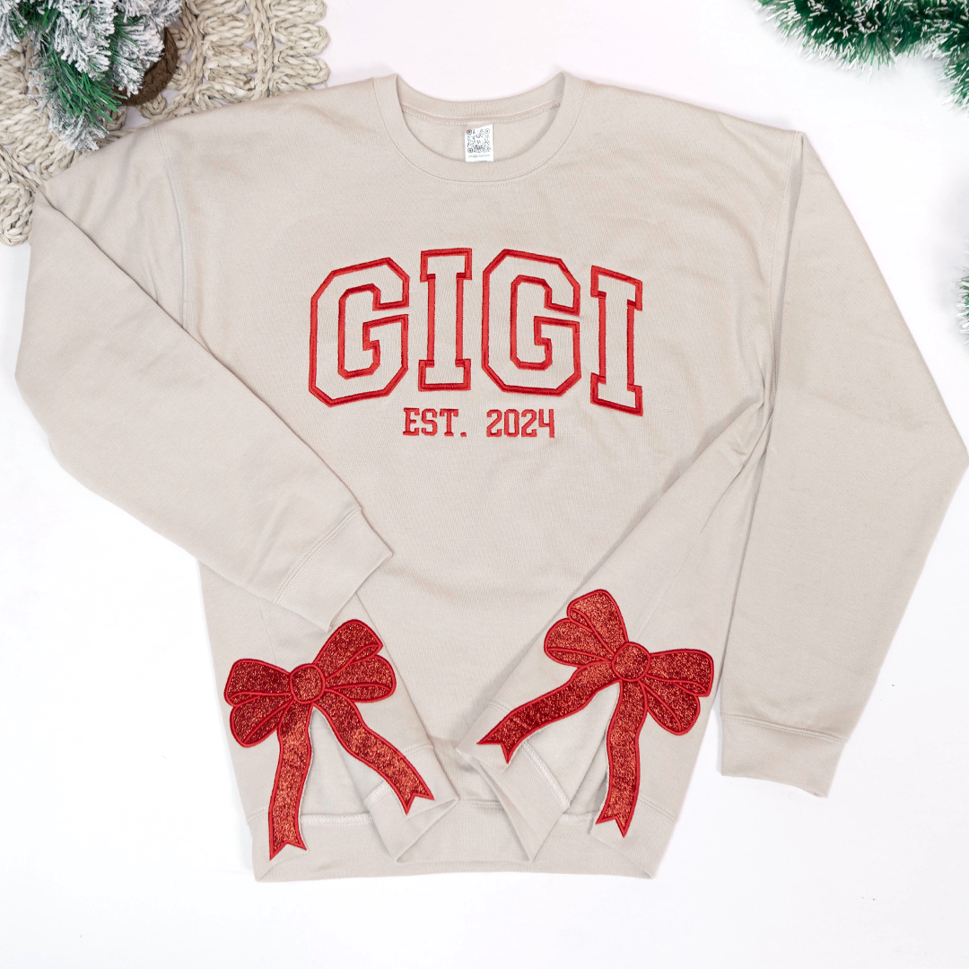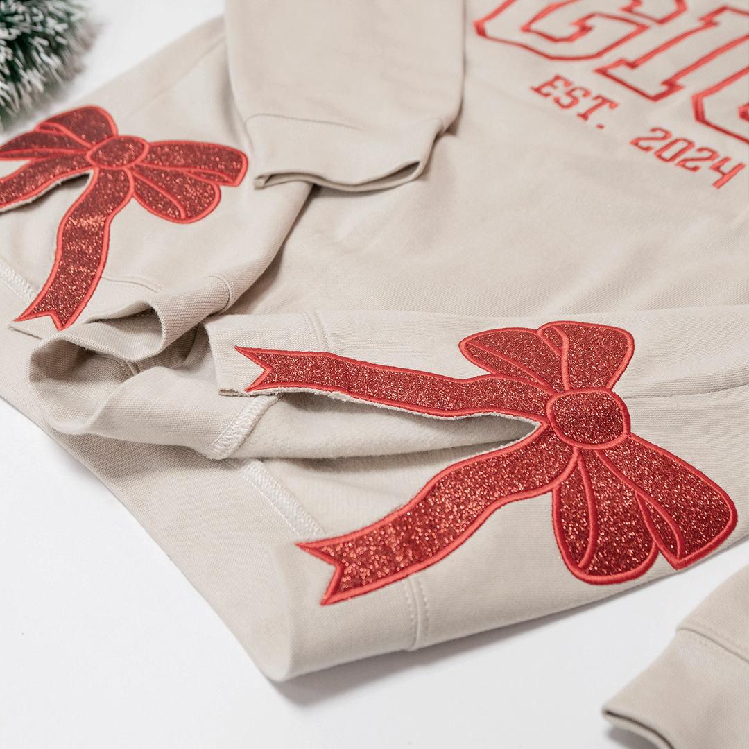 Custom Embroidered Christmas Bow Embellished Sweatshirt with Date