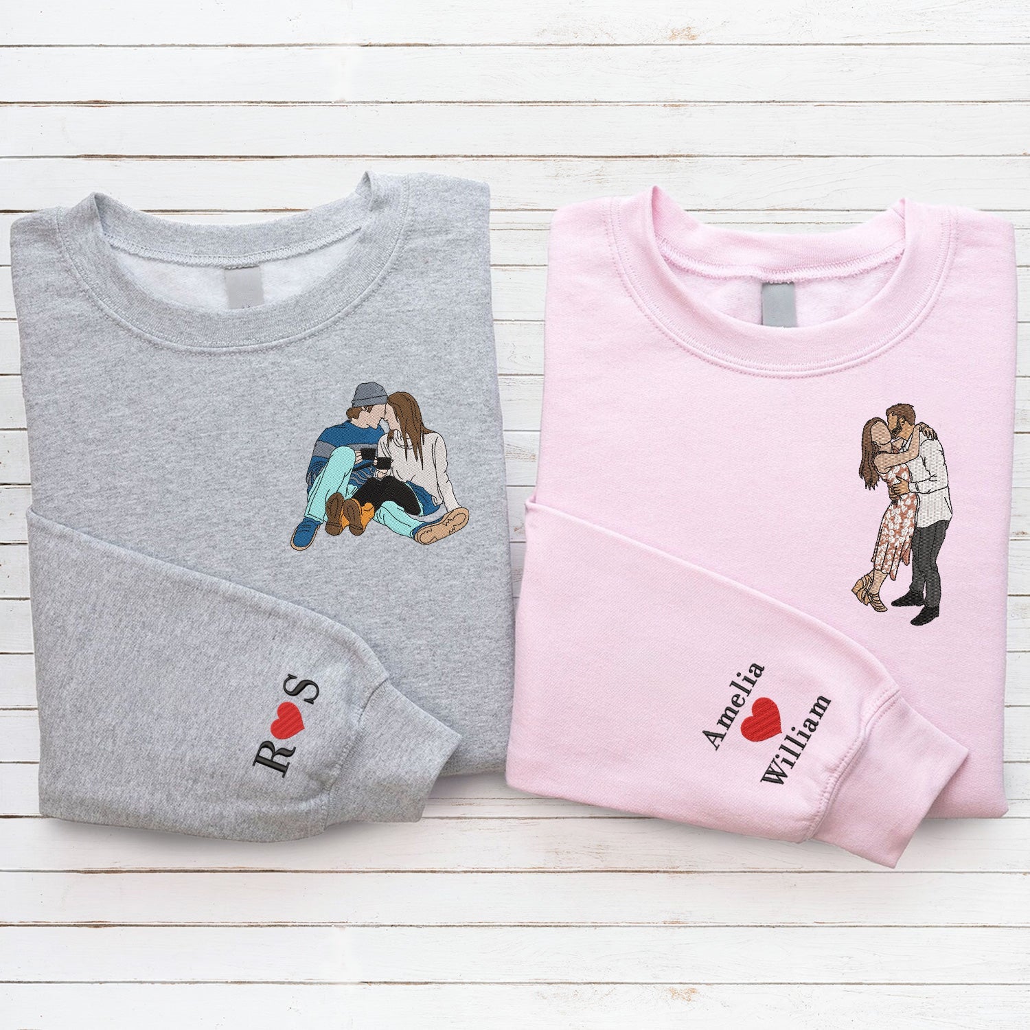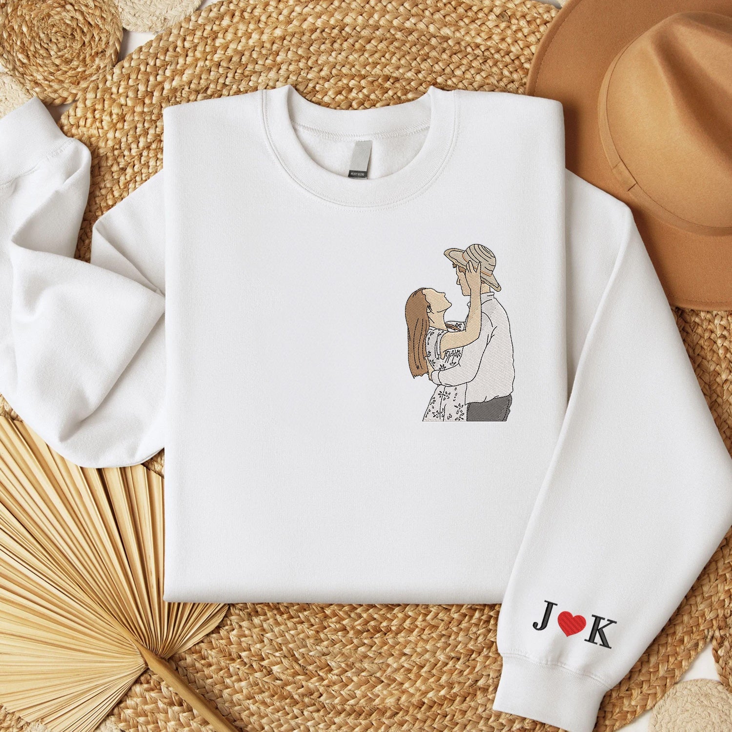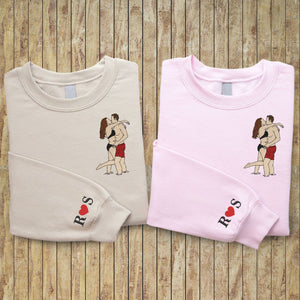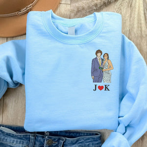 Custom Embroidered Couple Art Drawing Gift, Portrait From Photo, Embroidered Sweatshirt, Valentine Personalized, First Anniversary Gift