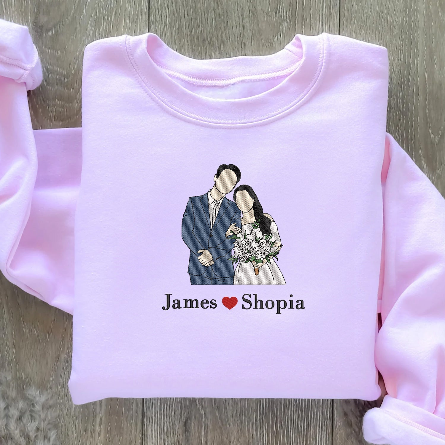 Custom Embroidered Couple photo, Portrait Wedding gifts, Embroidered Sweatshirt, Valentine Personalized, First Anniversary Gift
