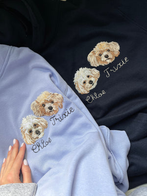 Custom Embroidered Dog Face with Name Hoodie | Gifts for Pet Lovers