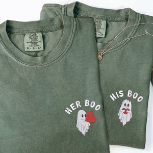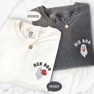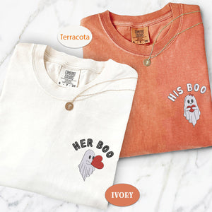 Celebrate your love with our Ghost Her His Boo Matching Comfort Colors Shirts - a perfect blend of comfort, quality, and sentimentality. Made with the signature soft-washed, garment-dyed cotton, these ultra-cozy and durable tees are designed for couples who want to showcase their bond in a stylish yet effortless way. Ideal for anniversaries, Valentine’s Day, birthdays, or just because, these high-quality shirts feature a delicate heart puzzle embroidery, symbolizing how you and your partner complete each other. Personalize yours with initials or a special date to create a meaningful and unique gift. Perfect for boyfriends, girlfriends, husbands, wives, or best friends, these matching Comfort Colors shirts are a timeless way to express love while enjoying a relaxed, vintage-style fit. Make every moment special with these heartfelt embroidered shirts!