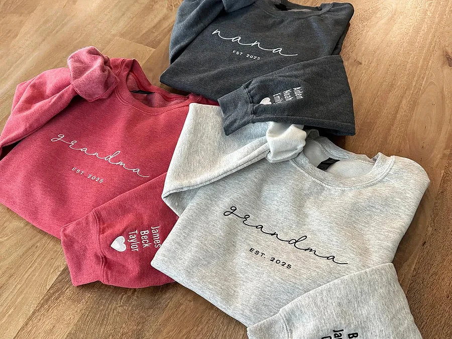 Custom Embroidered Grandma Sweatshirt with Grandkids Names on Sleeves
