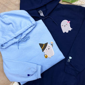 Custom Embroidered Halloween Couples Cute Ghost Boo Hoodies For Couples