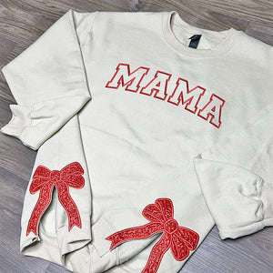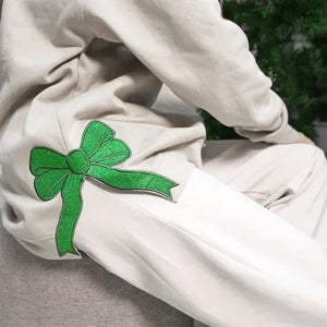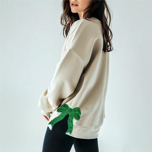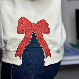 🎄💖Embroidered Merry Glitter Christmas Bow Embellished Sweatshirt – Custom Side Bow Cut-Out Sweatshirt💖🎄