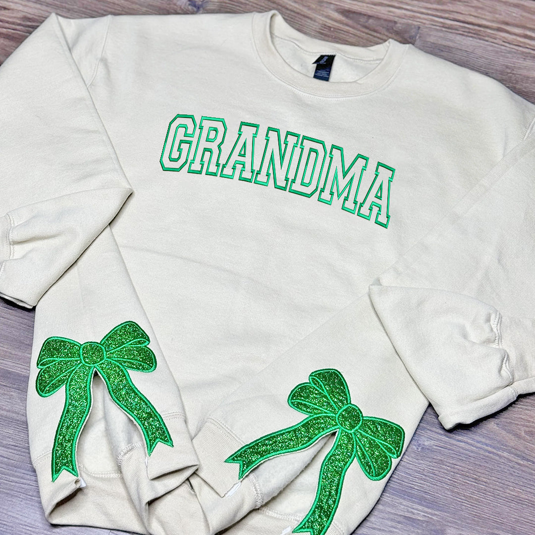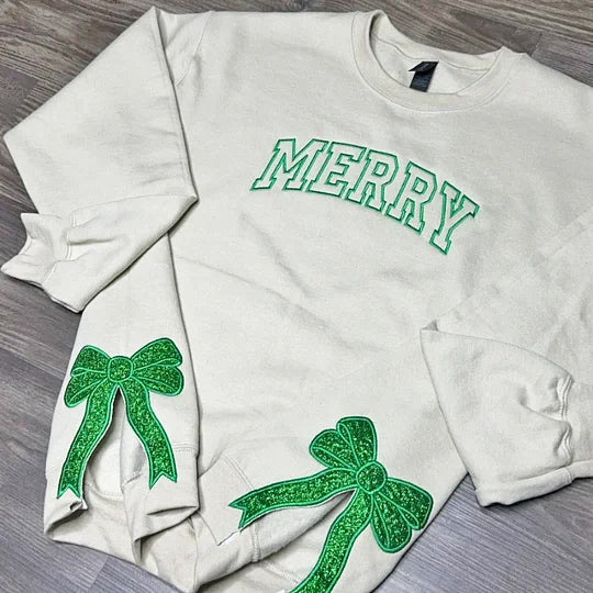 Custom Embroidered Merry Glitter Christmas Bow Embellished Sweatshirt
