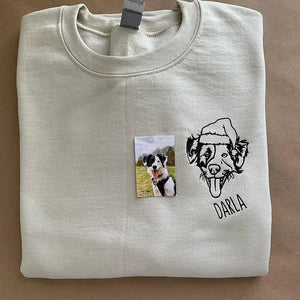 Home Custom Embroidered Pet Face Hoodie Sweatshirt | Personalized Pet Portrait for Christmas or Memorial