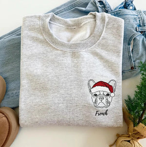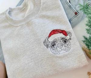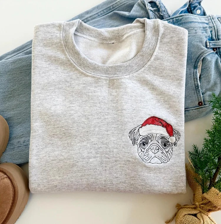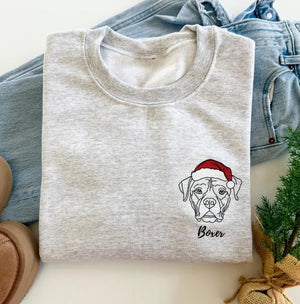 Custom Embroidered Pet Outline Portrait Sweatshirt | Merry Christmas Gifts