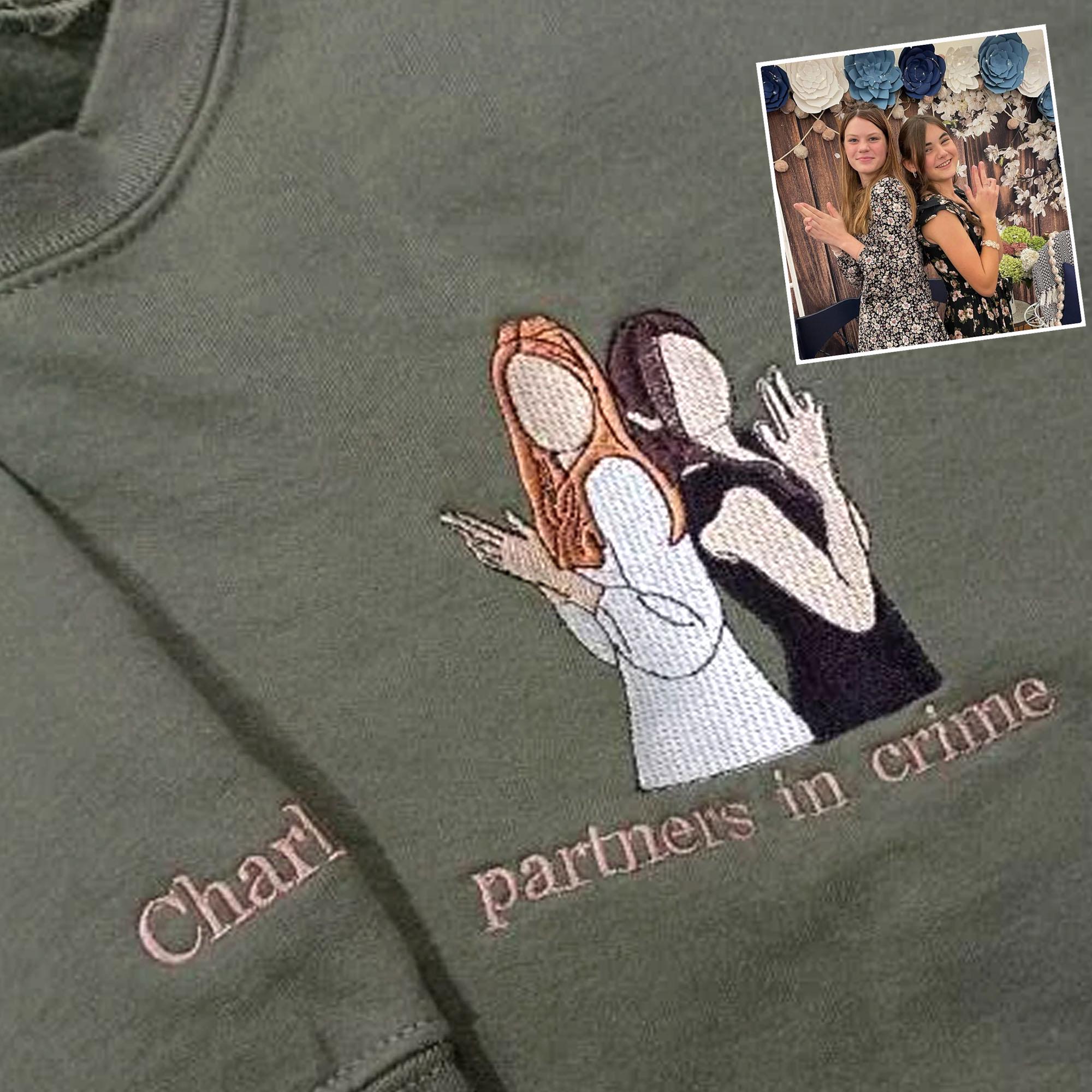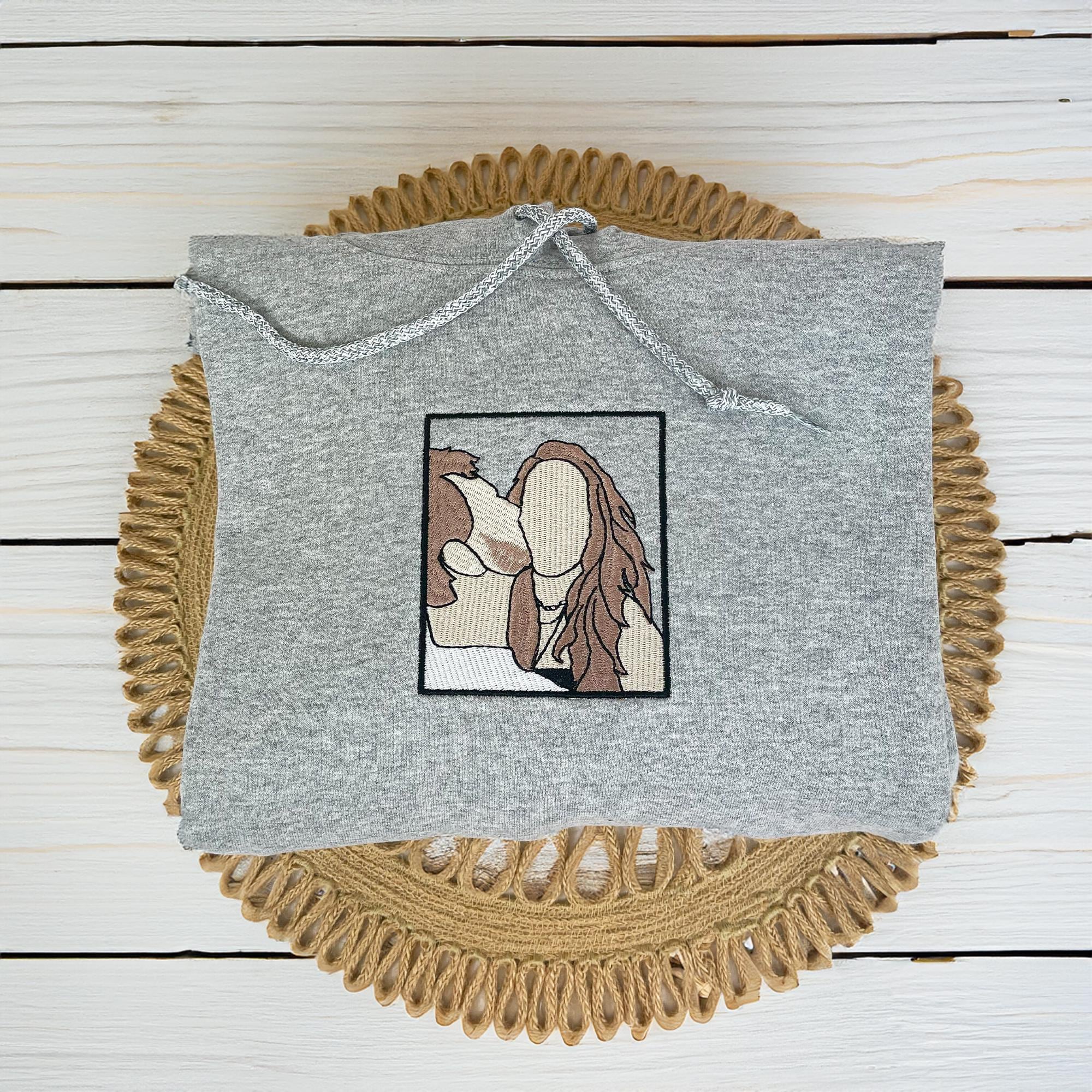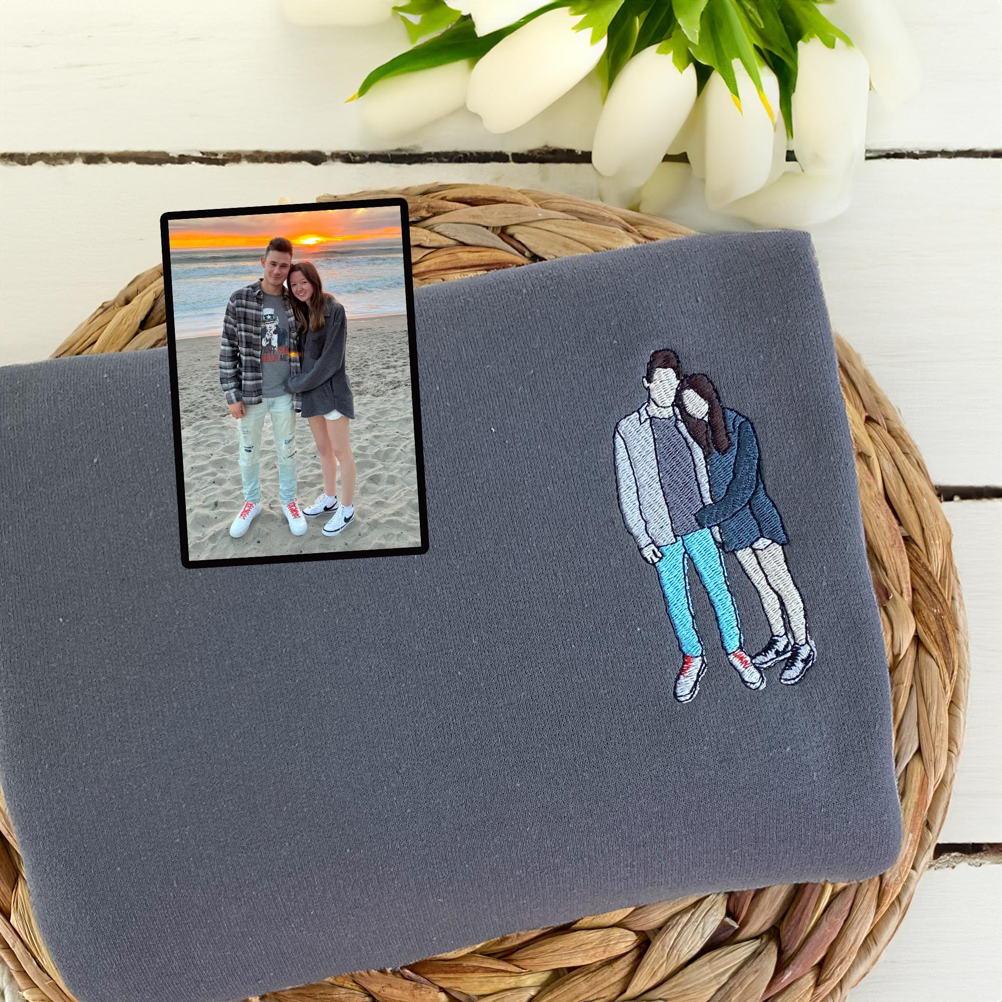Custom Embroidered Photo Portrait Sweatshirt Family Portrait Hoodie, Best Gift for boyfriend