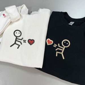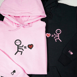 Custom Embroidered Stick Figure Love Matching Hoodies for Couples | Couple Anniversary Gift