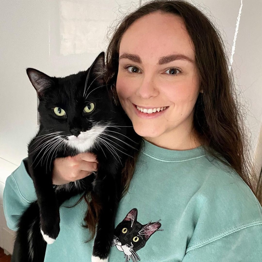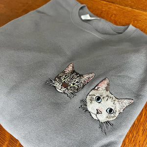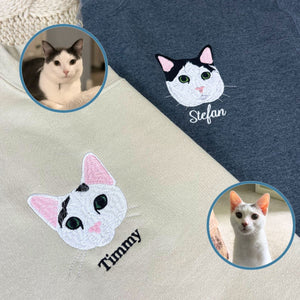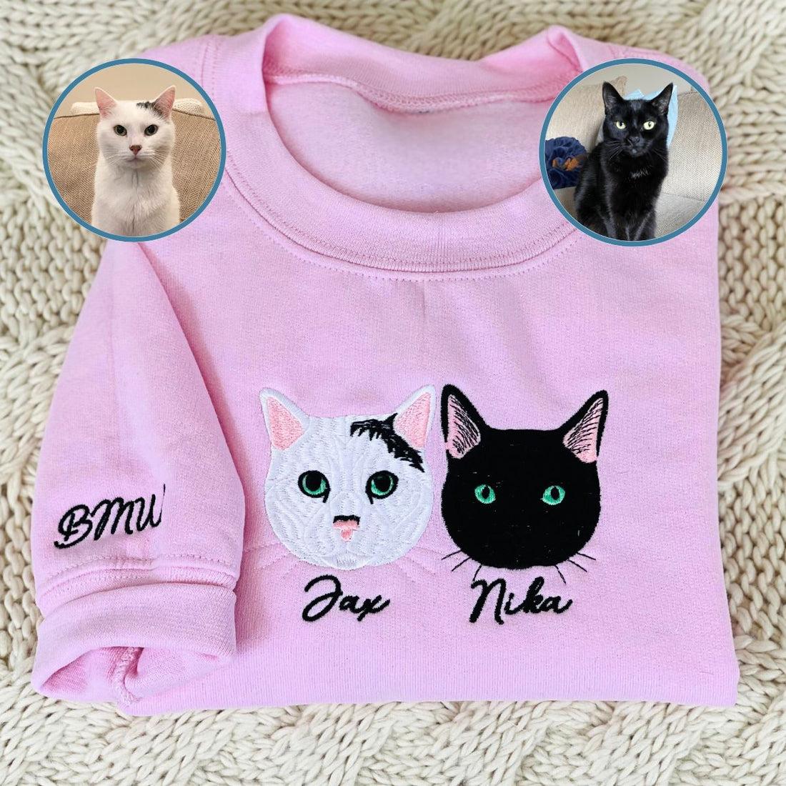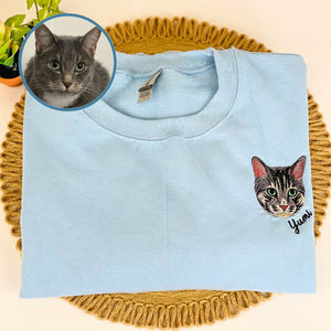 Custom Full-Color Cat Face Photo Embroidered Sweatshirt– Personalized Pet Portrait Sweatshirt | Gift For Pet Lovers