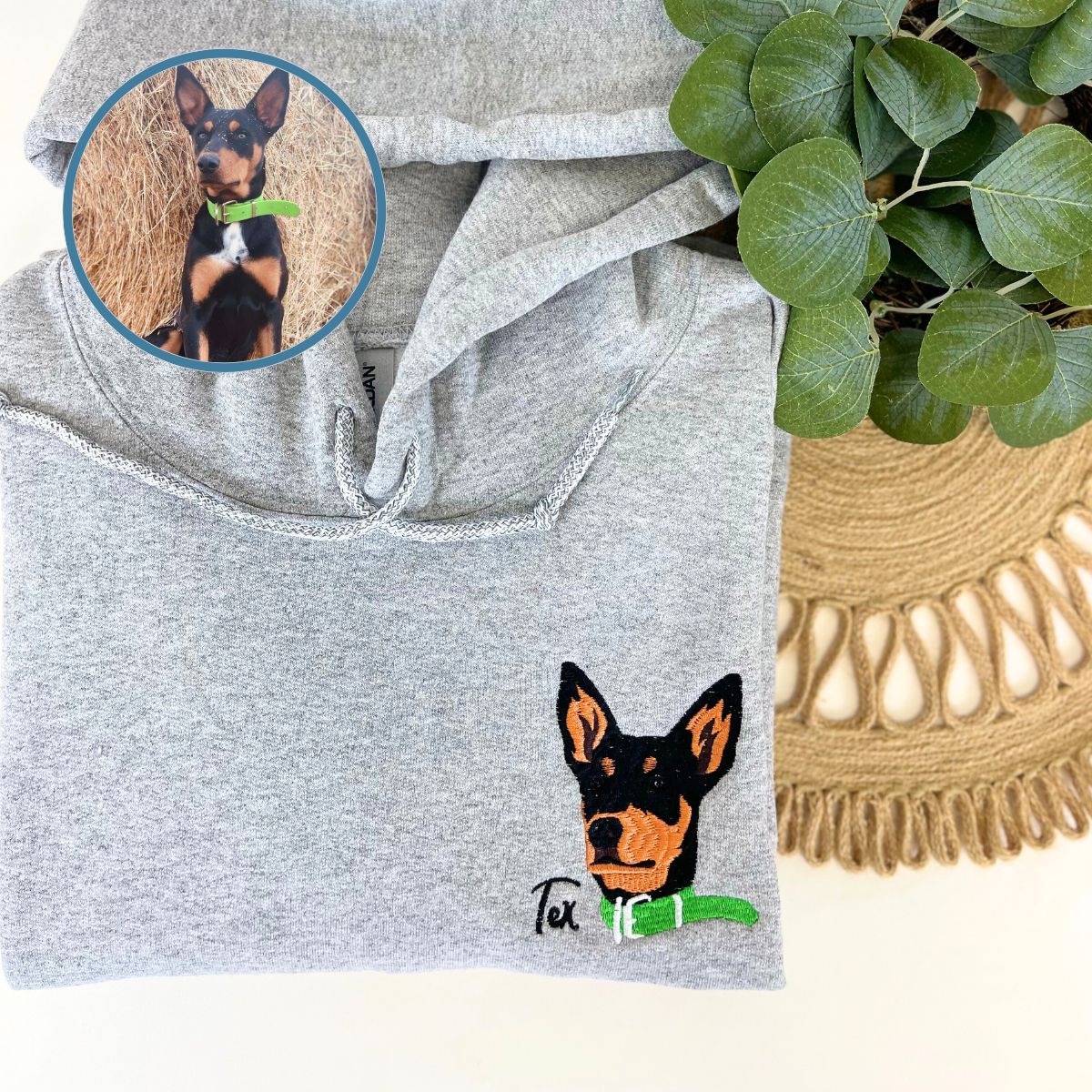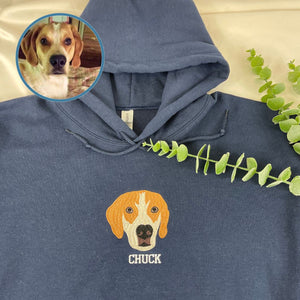 Custom Full-Color Dog Face Photo Embroidered Hoodie | Gift For Pet Lovers