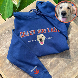 Custom Full-Color Varsity Crazy Dog Lady Hoodie | Gift For Pet Lovers