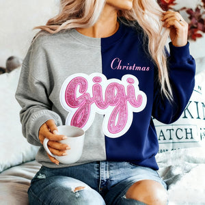 Custom Glitter Embroidered Gigi Christmas Two Tone Sweatshirt