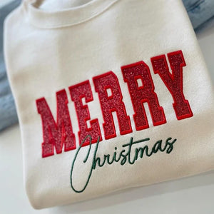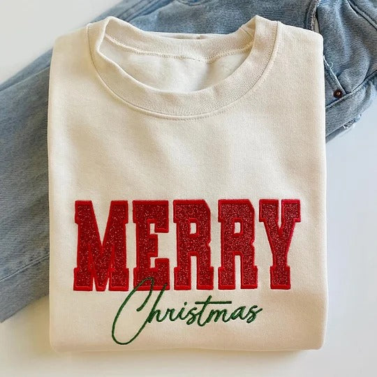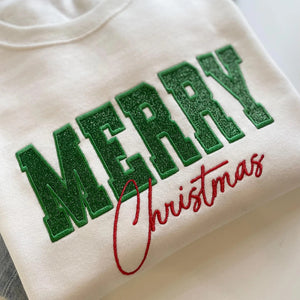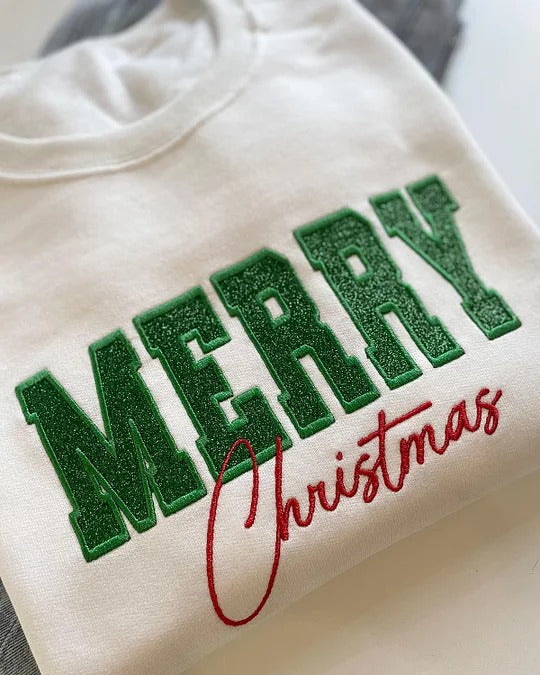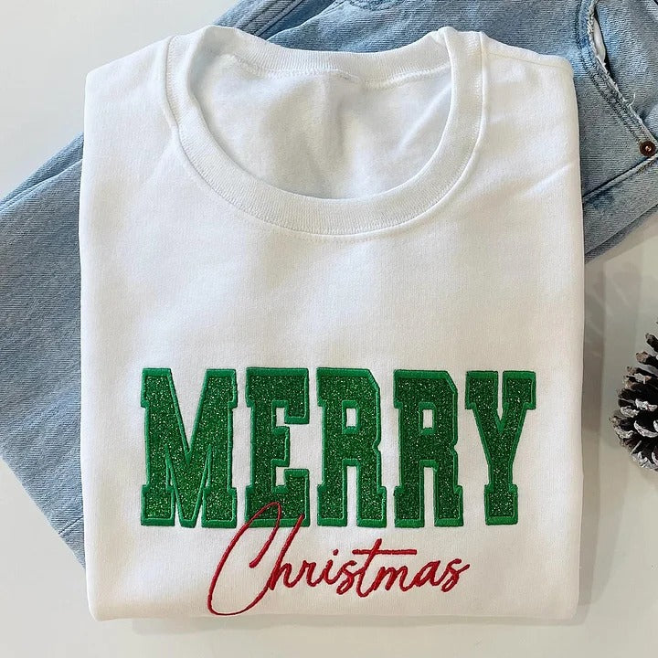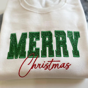 Custom Glitter Embroidered Merry Christmas Sweatshirt