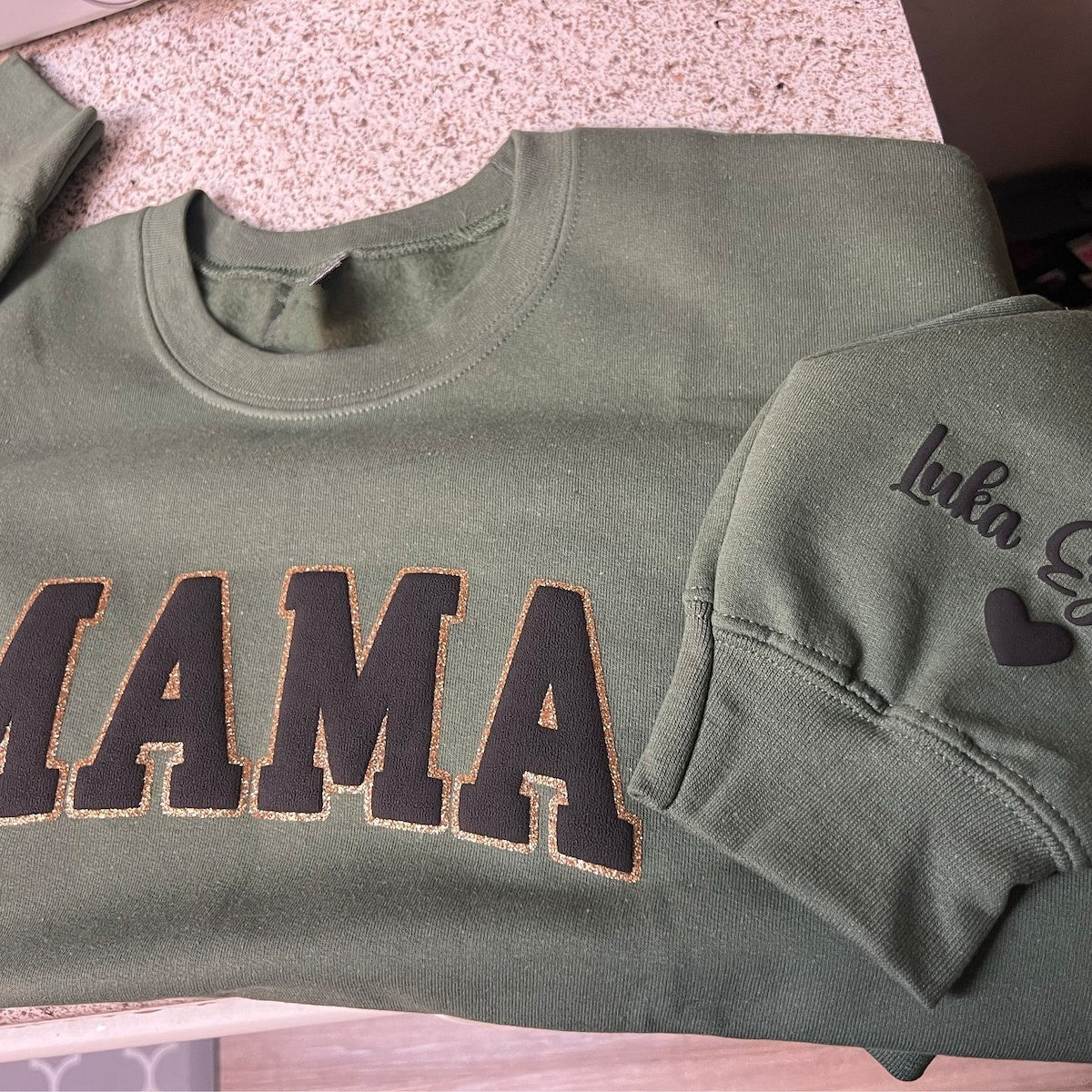 Custom Glitter Puff Mama Crewneck Sweatshirt with Kids Names | Christmas Gift Mom, New Mom Gift, Mom Birthday