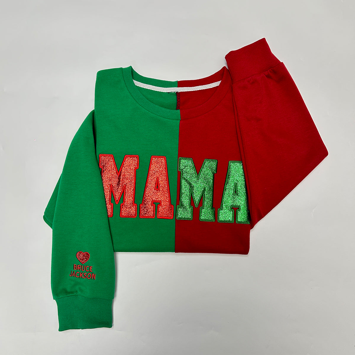 💖Custom Glitter Embroidered MAMA Name Two Tone Sweatshirt🌲