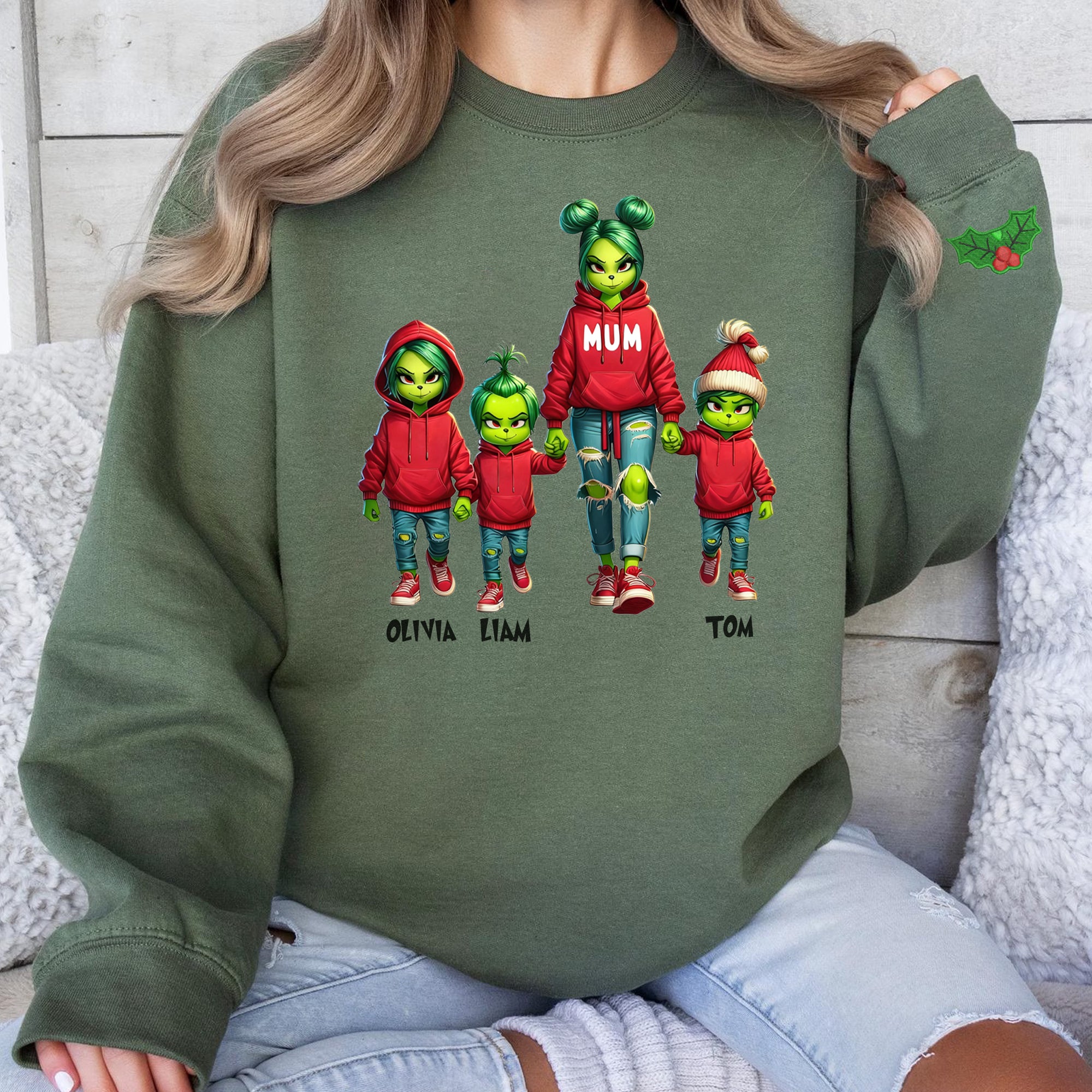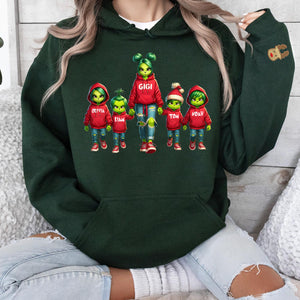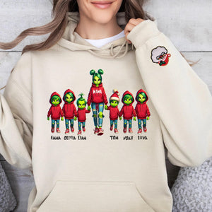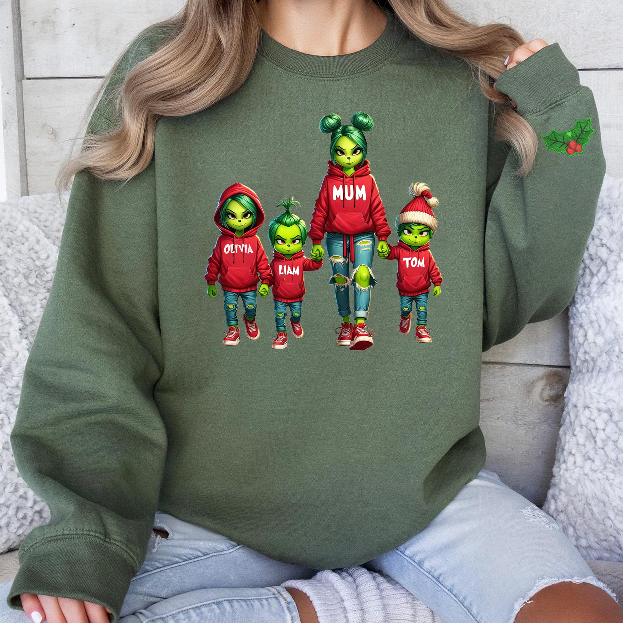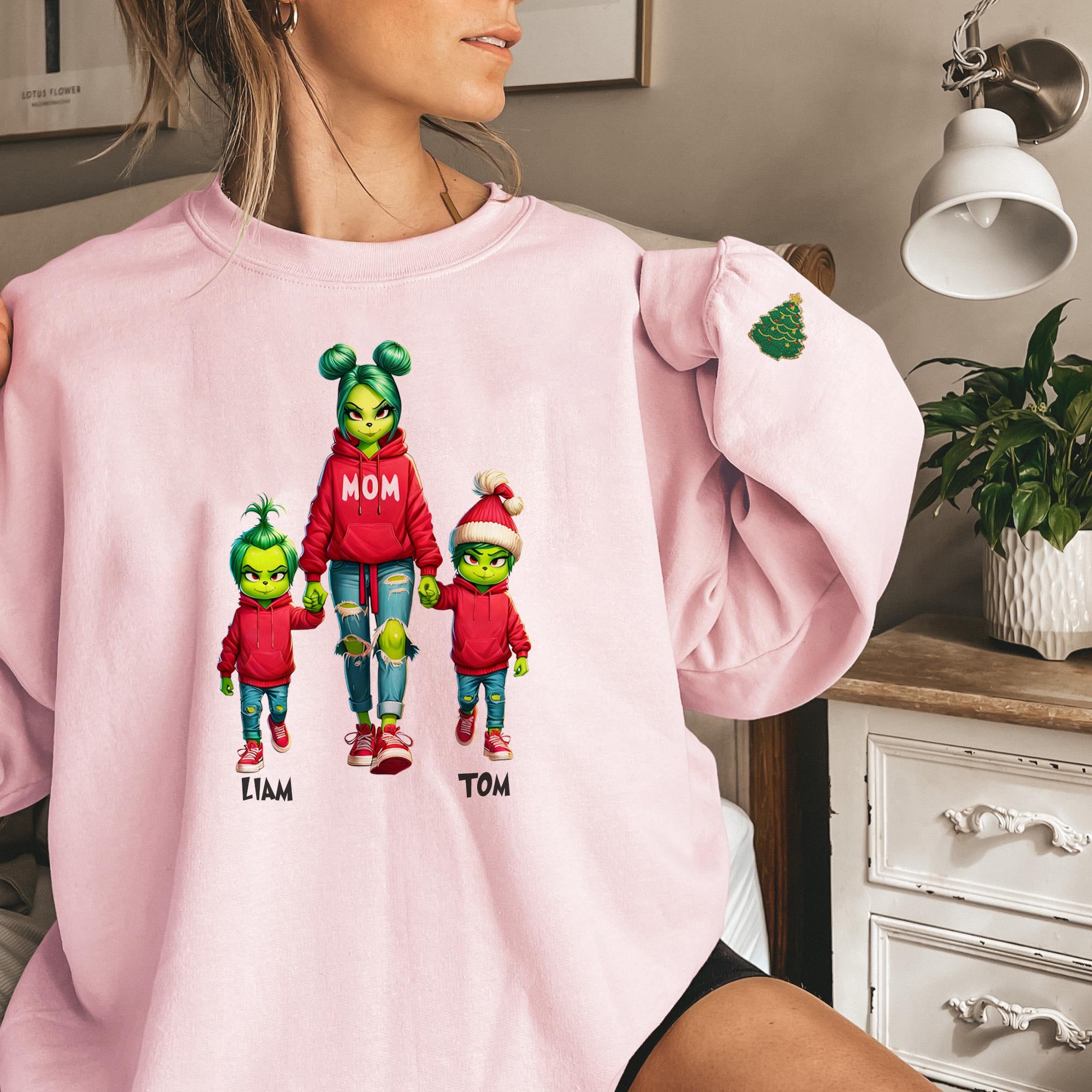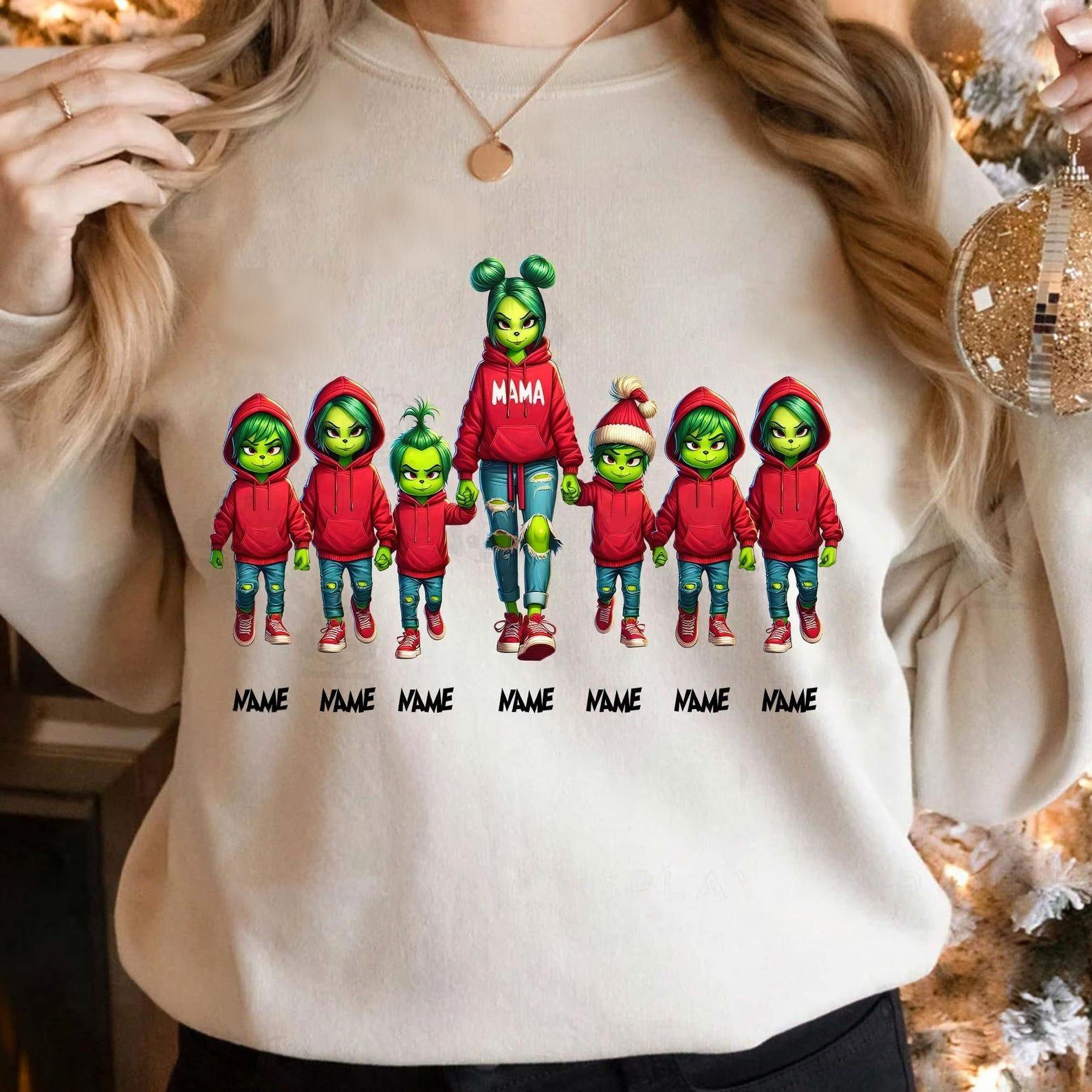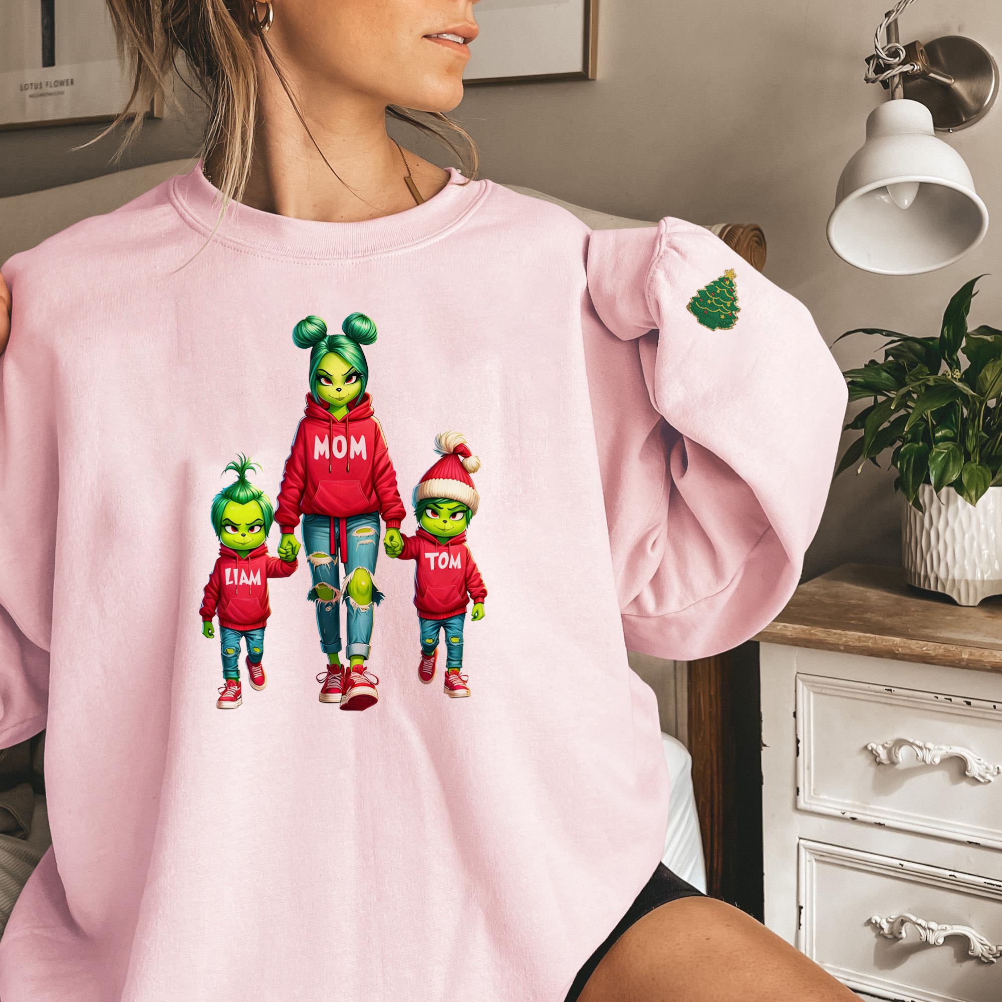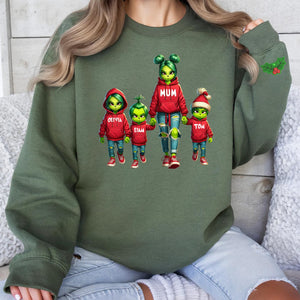 Custom Grinch Christmas Mom and Kids Name Sweatshirts Hoodie