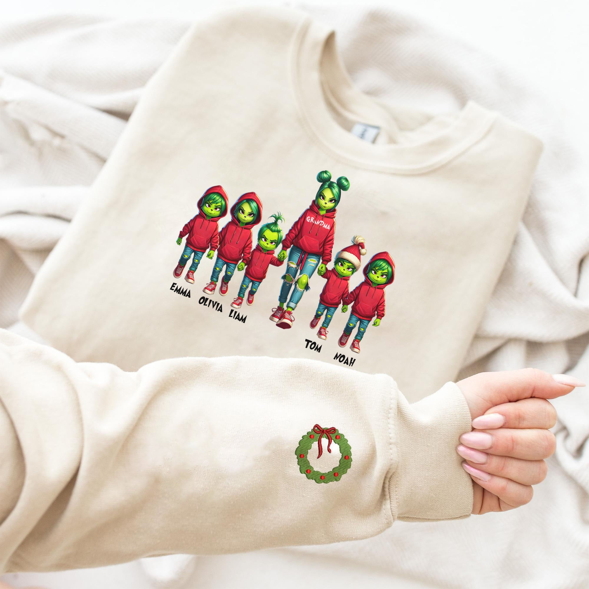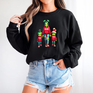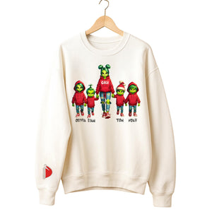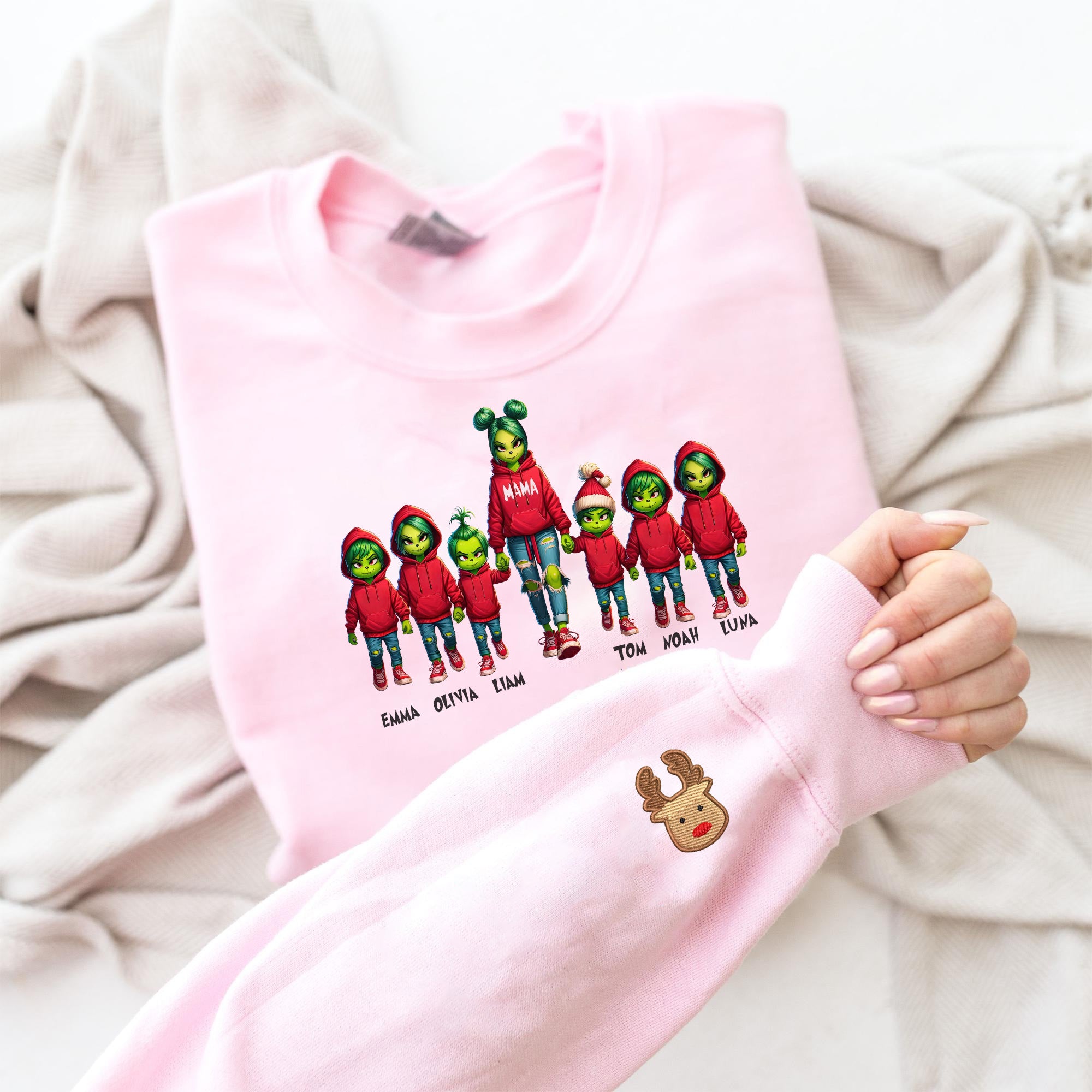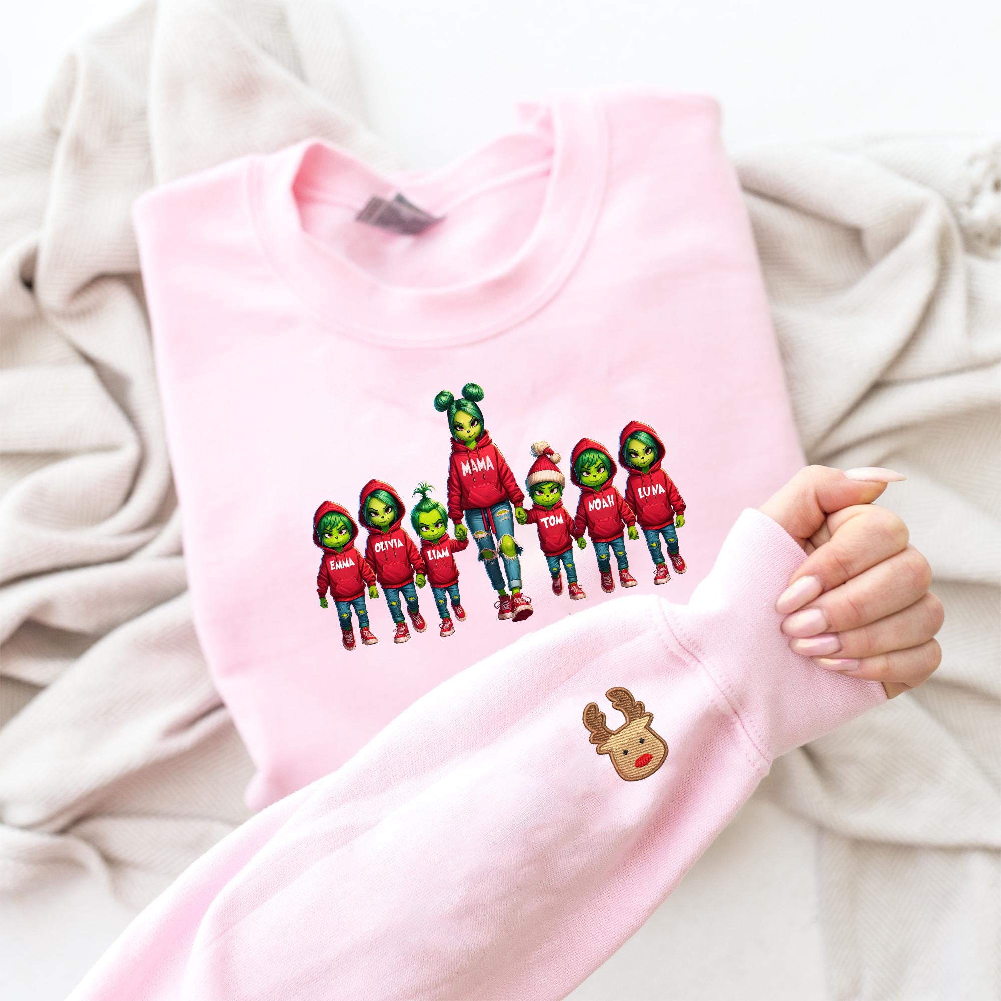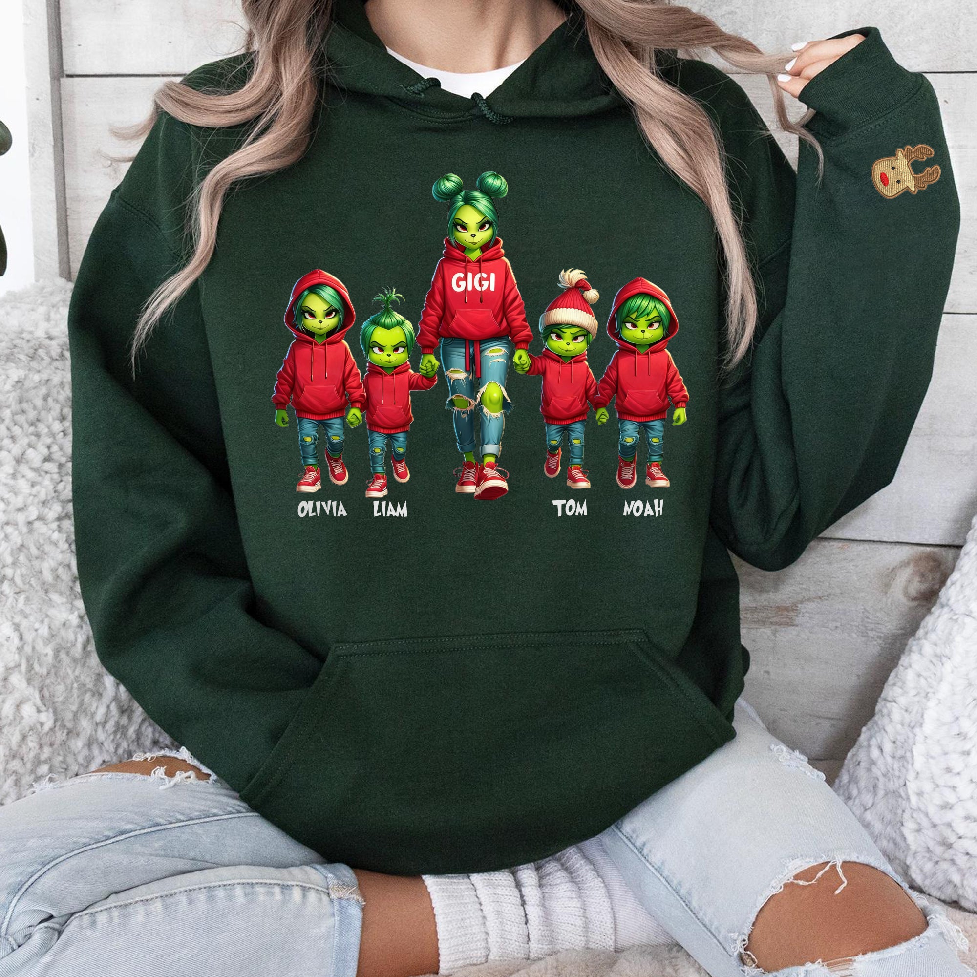 Custom Grinch Christmas Mom and Kids Name Sweatshirts Hoodie