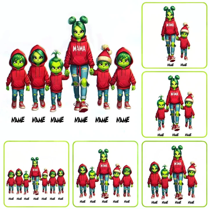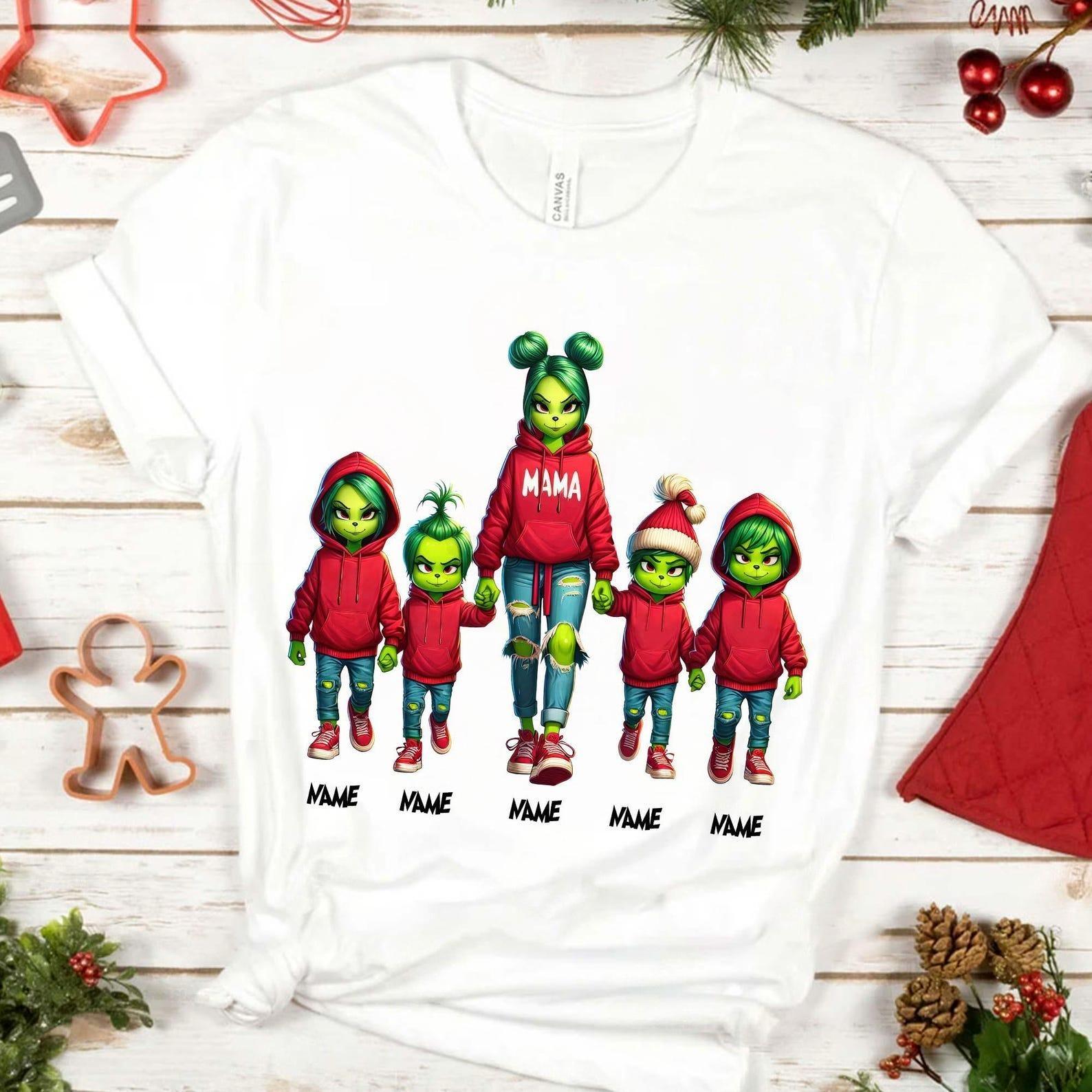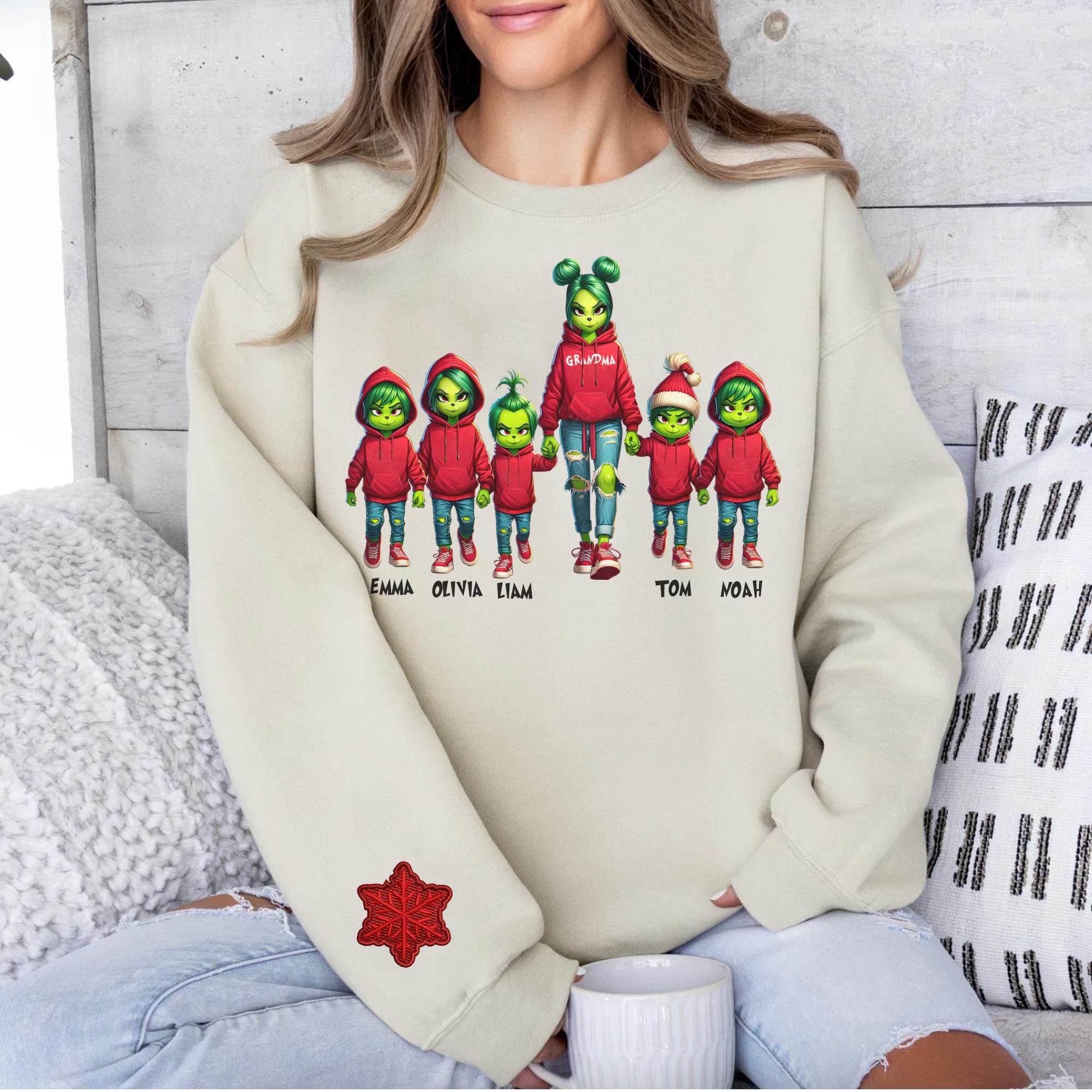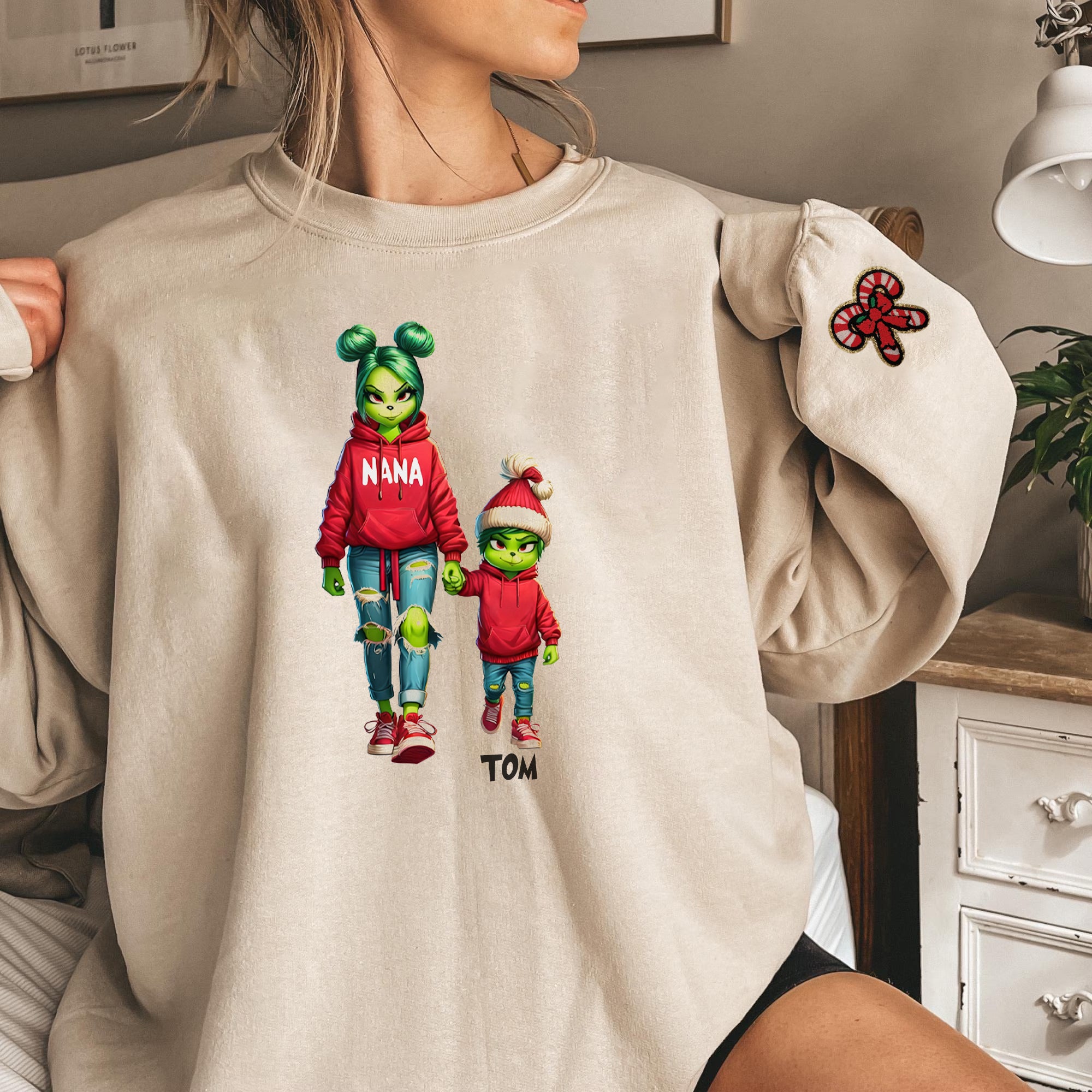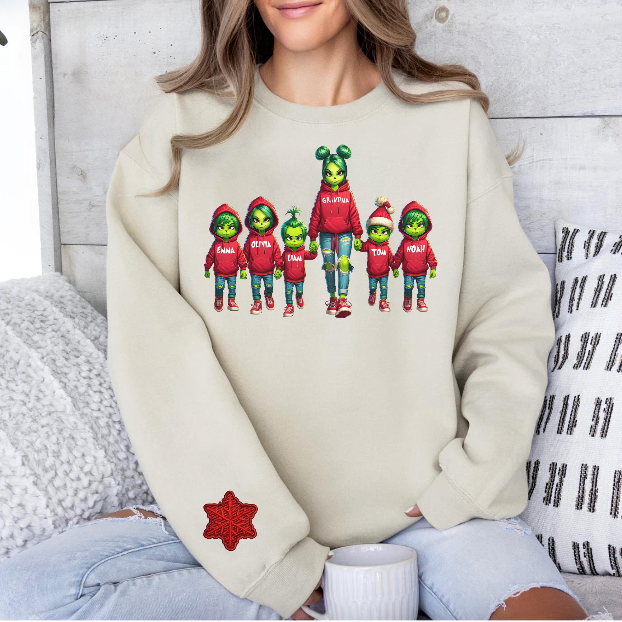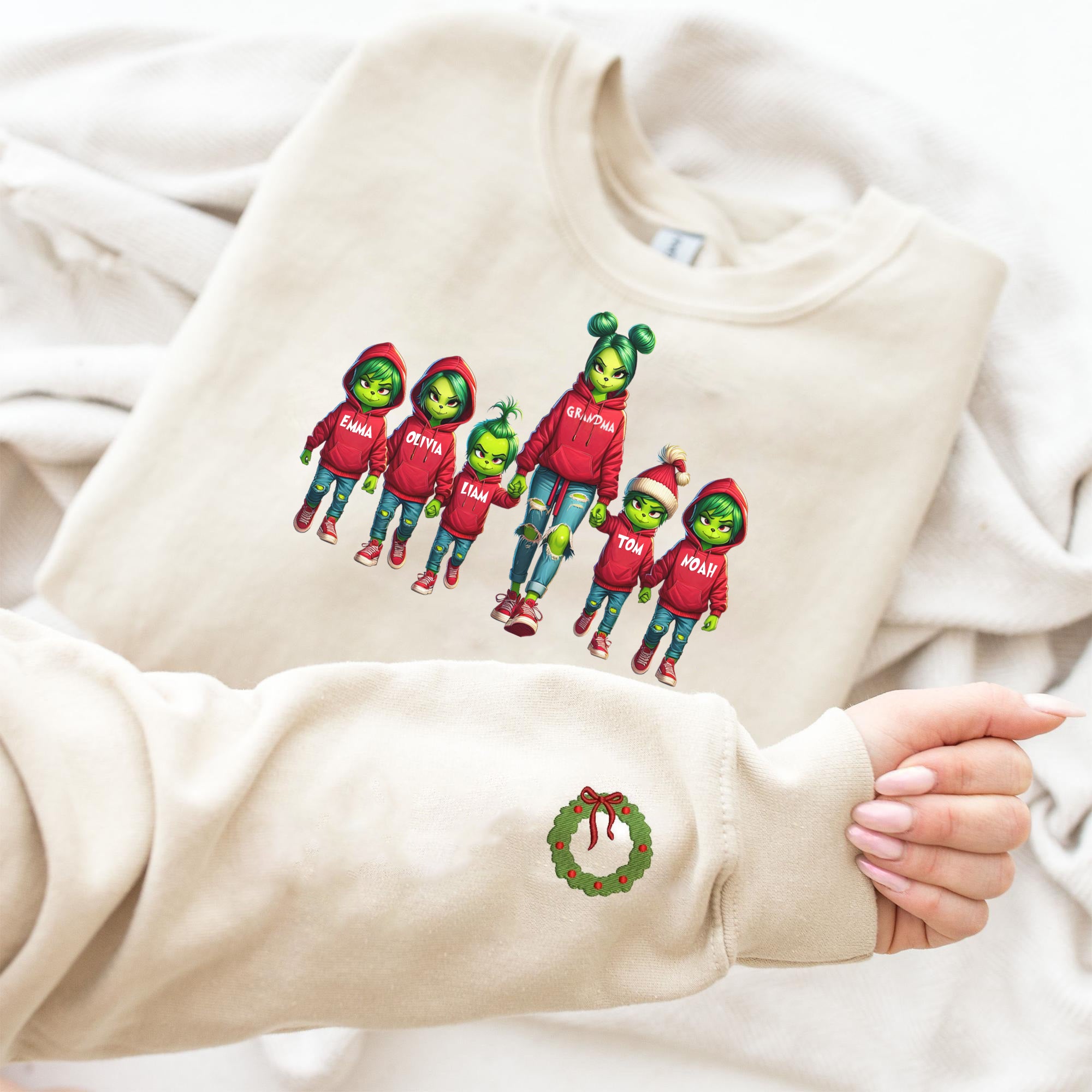 Custom Grinch Christmas Mom and Kids Name Sweatshirts Hoodie