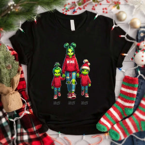 Home Custom Grinch Christmas Mom and Kids Name Sweatshirts Hoodie