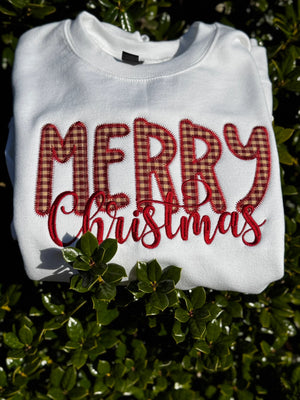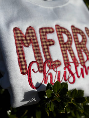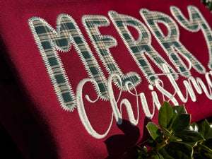 Custom Merry Christmas Applique Embroidered Side Bow Sweatshirt