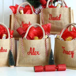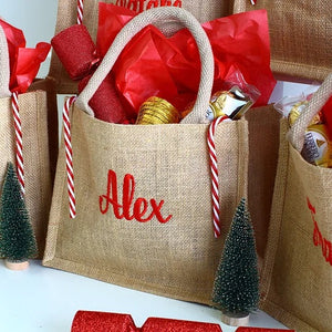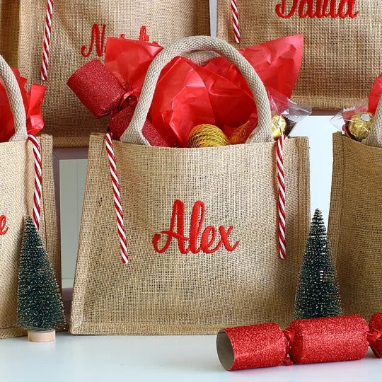 Custom Personalized Name Embroidered Christmas Gift Bag Eco-friendly Jute