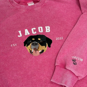 Custom Pet Photo & Name Exquisite Detail Embroidered Vintage Washed Sweatshirt T-Shirt Hoodie