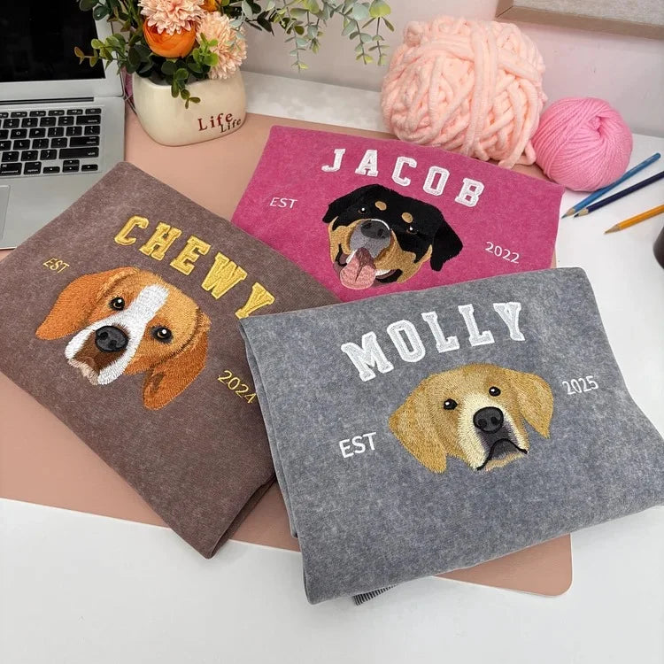 Home Custom Pet Photo & Name Exquisite Detail Embroidered Vintage Washed Sweatshirt T-Shirt Hoodie