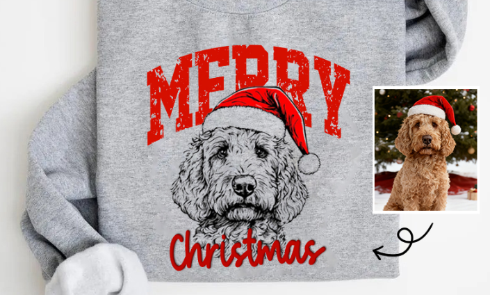 • Personalized Pet Graphic โ€“ Upload a photo of your dog or cat, and weโ€™ll add a festive Santa hat graphic.