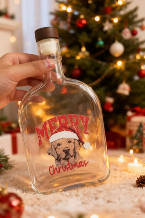 Custom Pet Portrait Merry Christmas Blessing Whiskey Bottle | Black Friday Sale