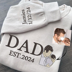 Custom Photo Embroidered Dad Sweatshirt Hoodie With Date Family Keepsake Father's Day Gift