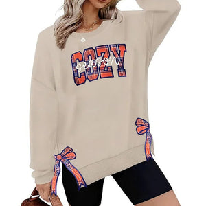 Elevate Cozy style with our cozy season Plaid Side Bow Cut-Out Sweatshirt!- Personalize the sleeve with the names of the Kids or loved ones to make it even more special.