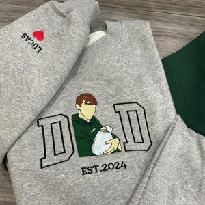 Custom Embroidered Family Photo Portrait Hoodie Anniversary Gift, Gift For Dad