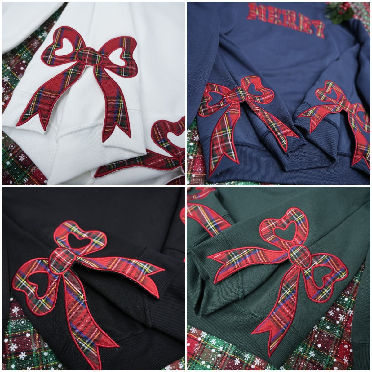 Custom Trendy Merry Side Bow Cut-Out Sweatshirt - Cozy Plaid Christmas Crewneck for Women | Christmas Gift for Mom