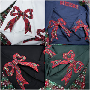 🎀Trendy Merry Side Bow Cut-Out Sweatshirt - Cozy Plaid Christmas Crewneck for Women 🎀