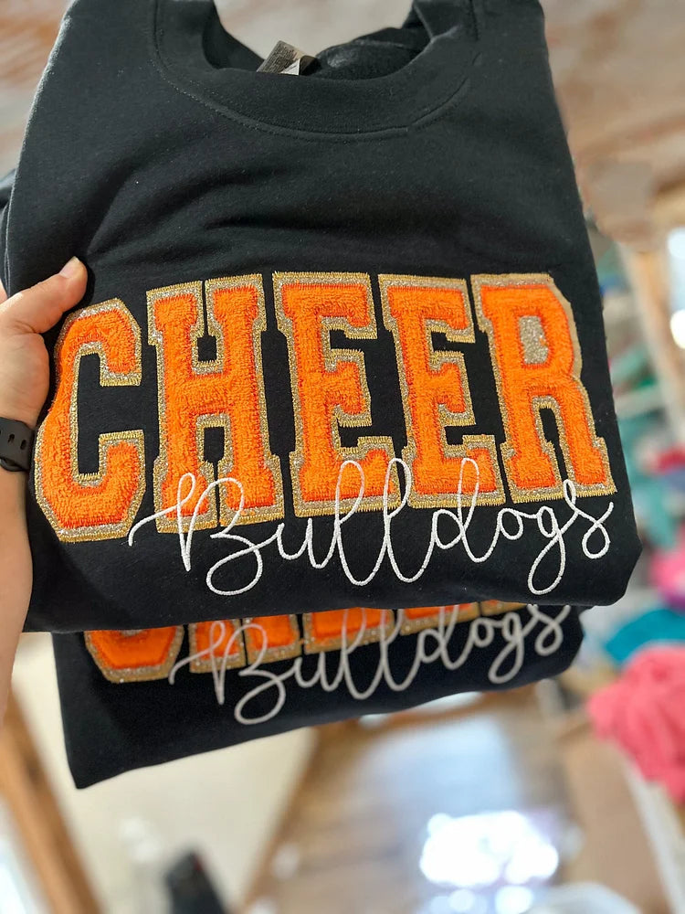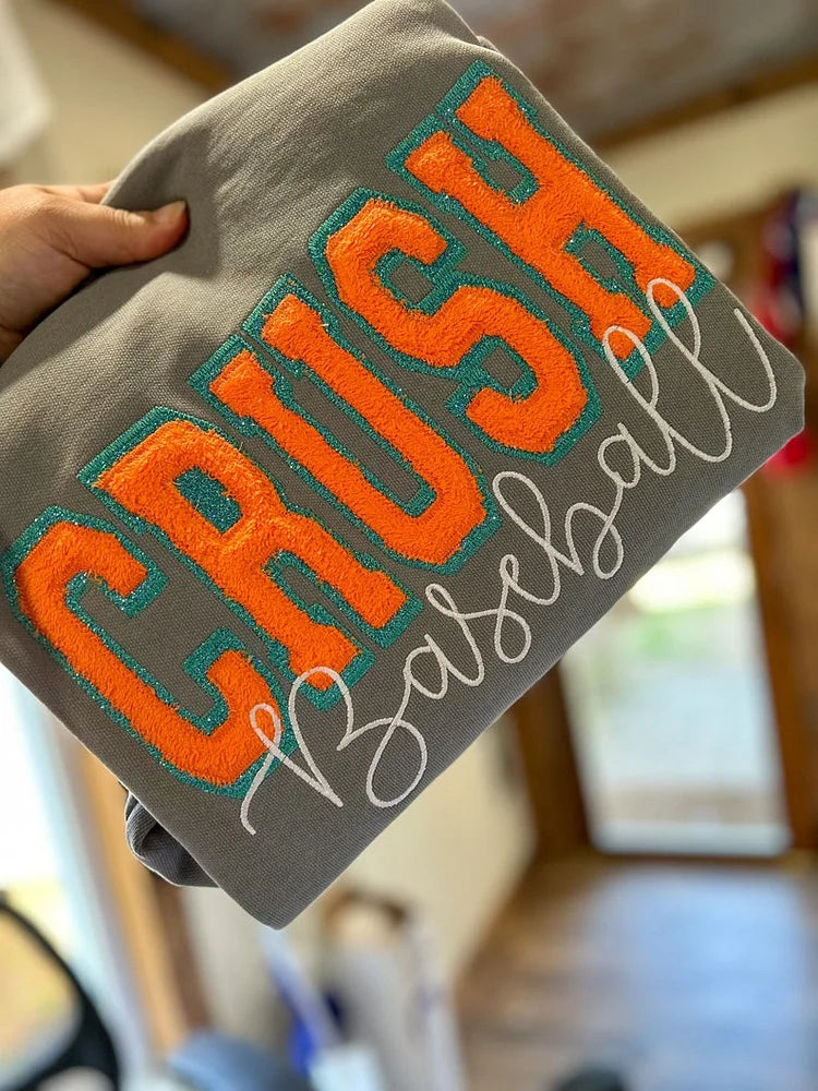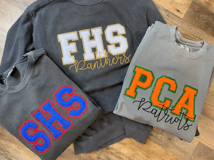 Home Custom Embroidered Applique Glitter University Varsity Sweatshirt
